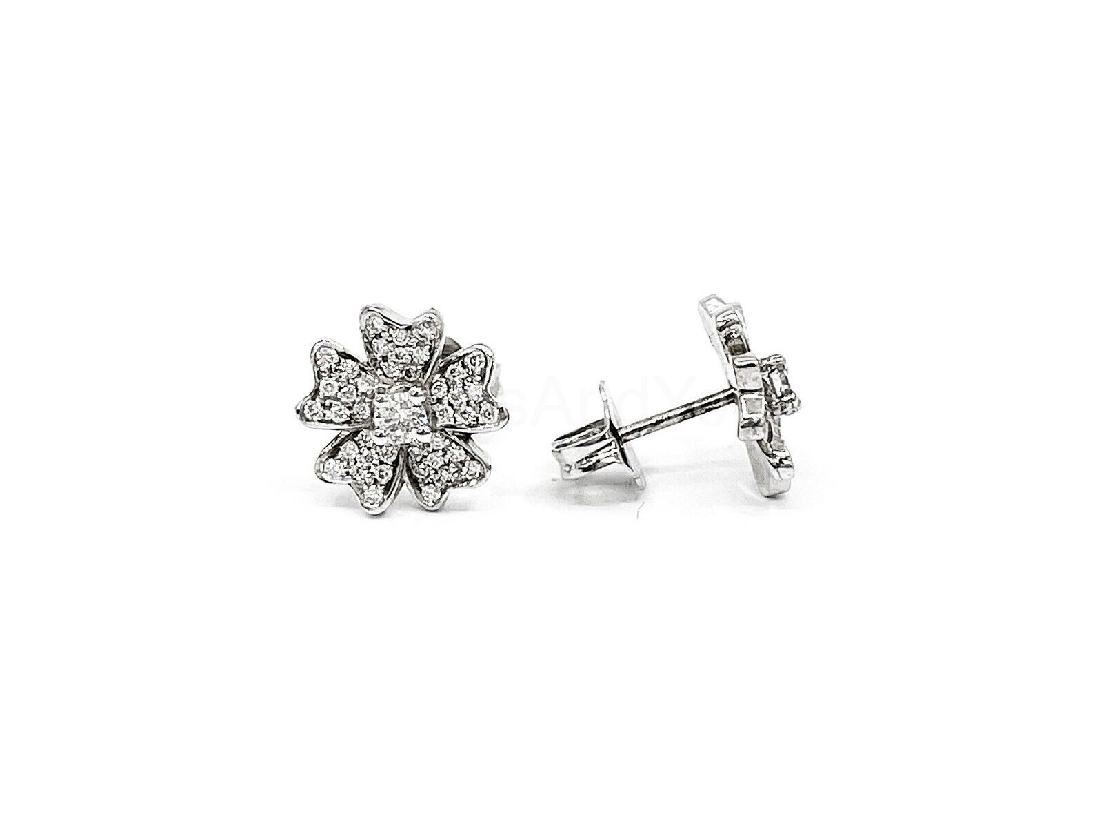 1ct Round Cut Moissanite Flower Cluster Stud Women Earring 14k White Gold Plated