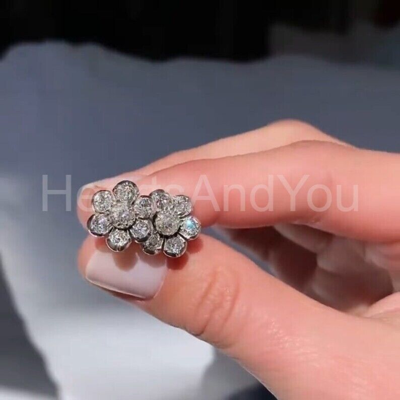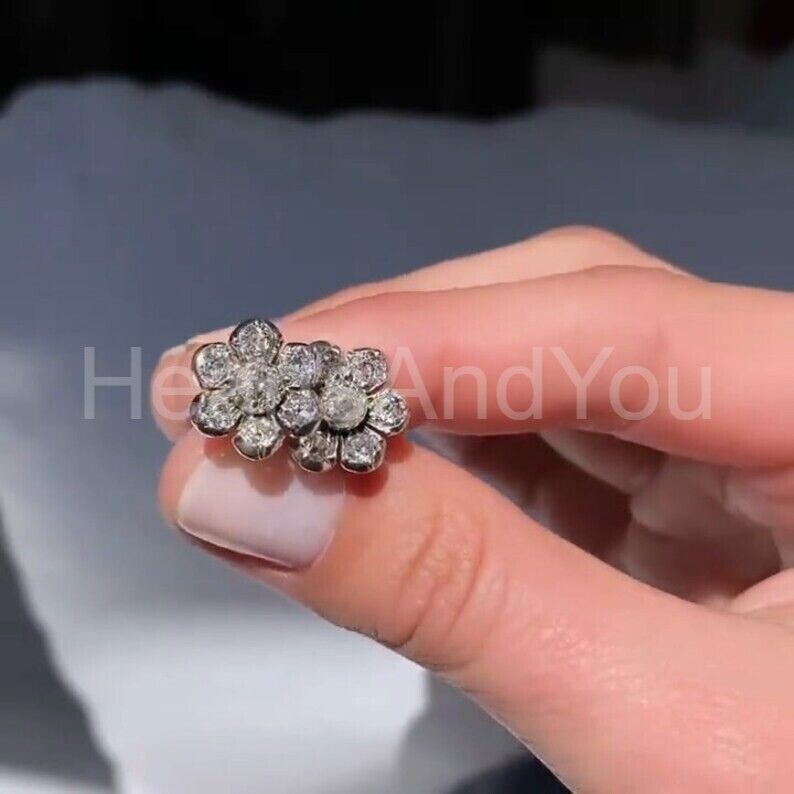 1ct Round Cut Moissanite Flower Stud Earrings For Women 14k White Gold Plated