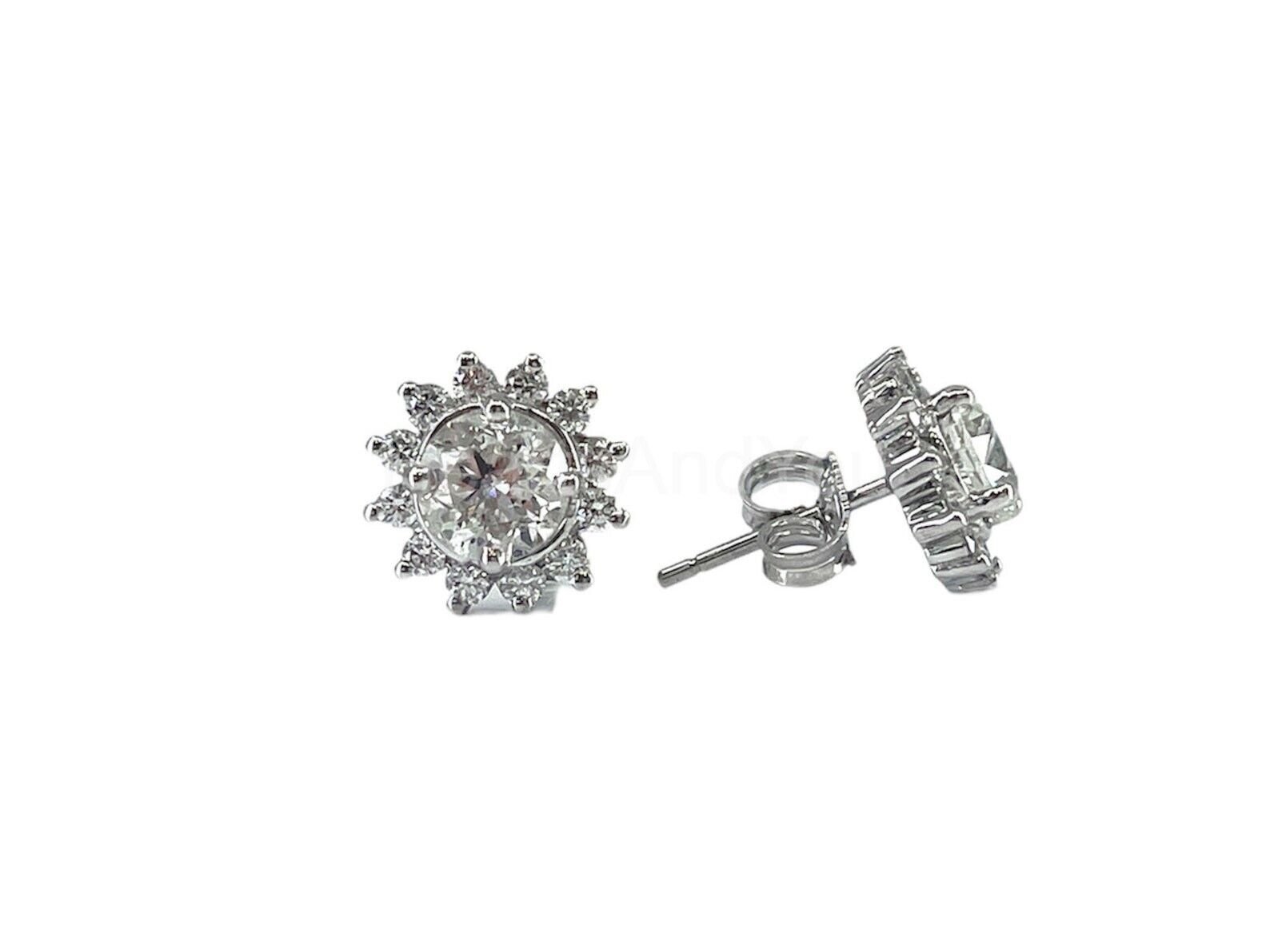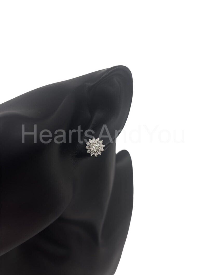 1ct Round Cut Moissanite Halo Cluster Stud Earrings Women 14k White Gold Plated