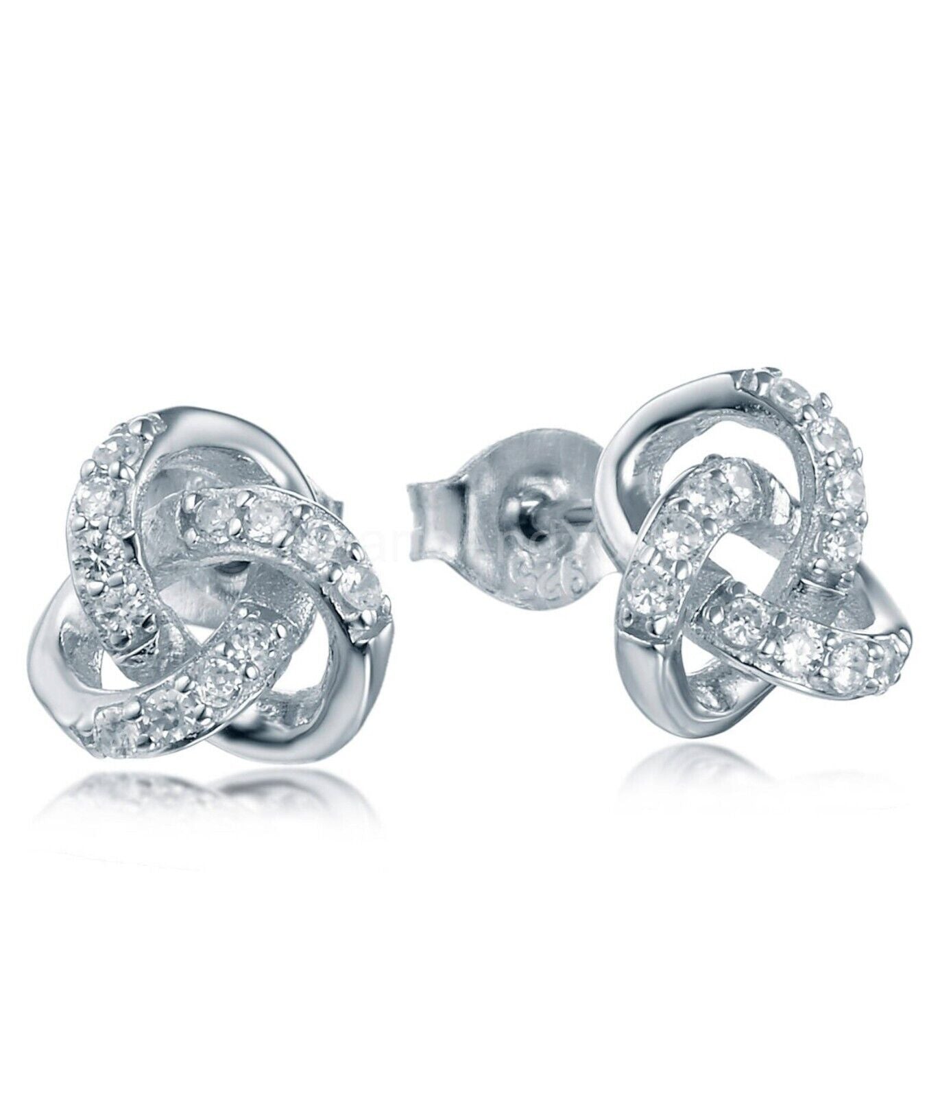 1ct Round Cut Moissanite Infinity Love Knot Stud Earrings 14k White Gold Plated