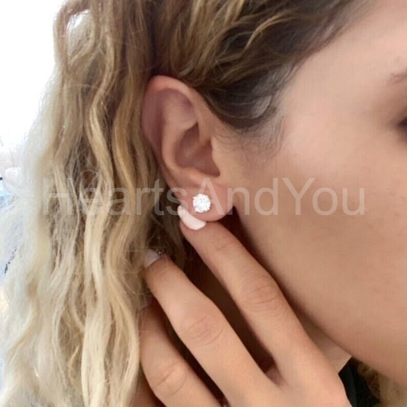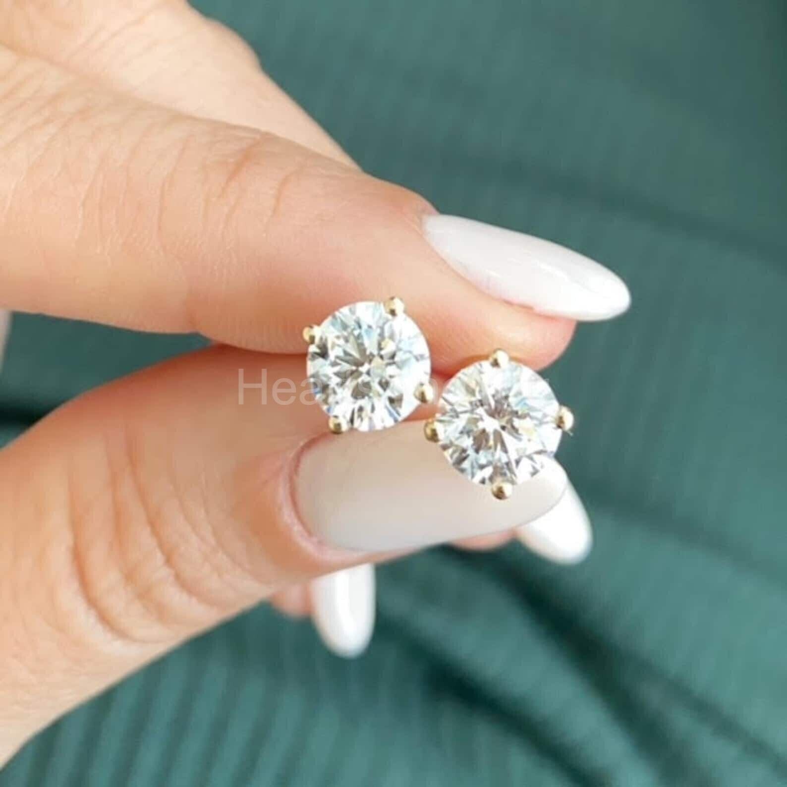 1ct Round Cut Moissanite Solitaire Stud Earrings For Women 14k Yellow Gold Plated