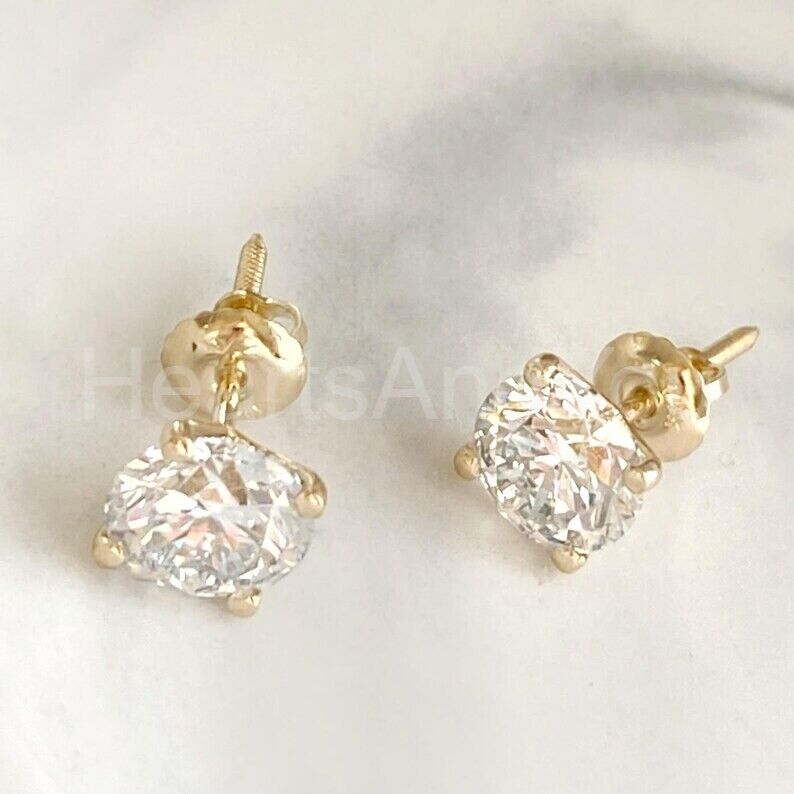 1ct Round Cut Moissanite Solitaire Stud Earrings For Women 14k YellowGold Plated