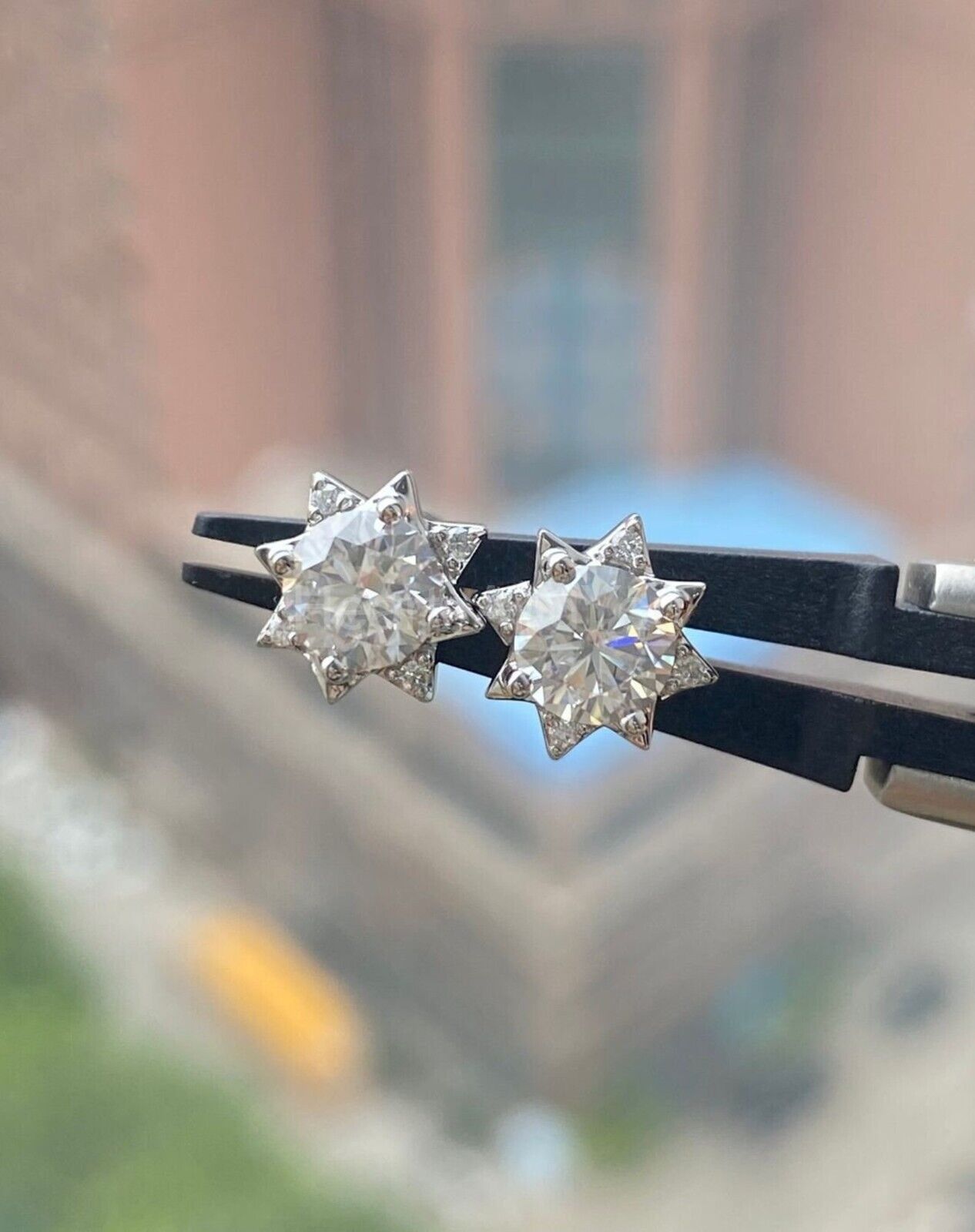 1ct Round Cut Moissanite Star Shape Bridal Stud Earrings 14k White Gold Plated