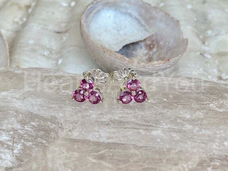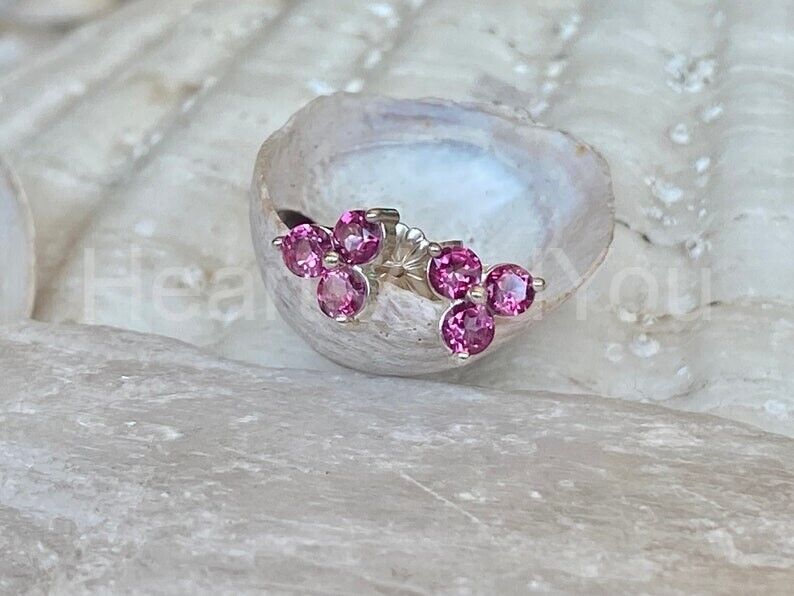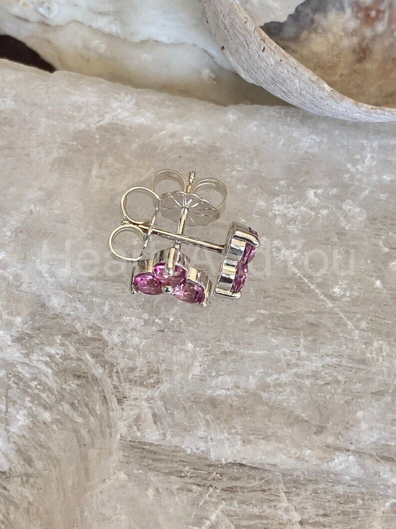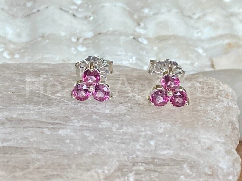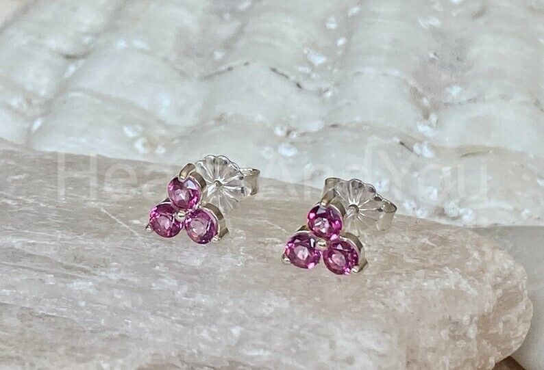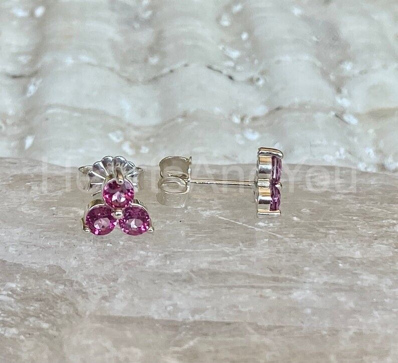 1ct Round Cut Simulated Pink Ruby Three Stone Stud Earrings 14k WhiteGold Plated