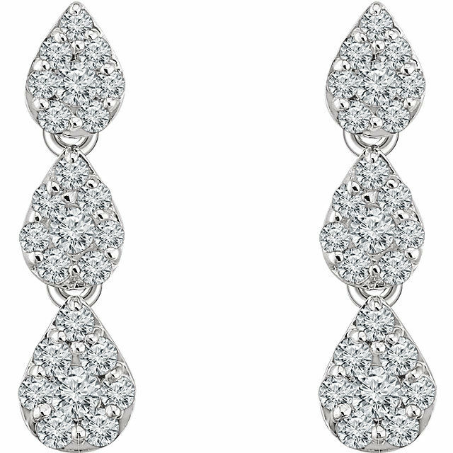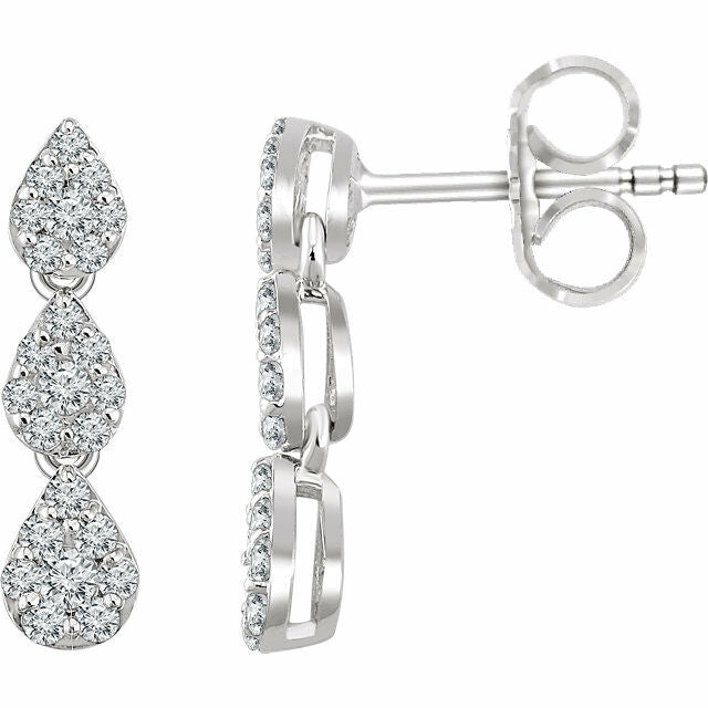 1ct Round Cut VVS1 Diamond Cluster Tear Drop Earring Women 14k White Gold Finish
