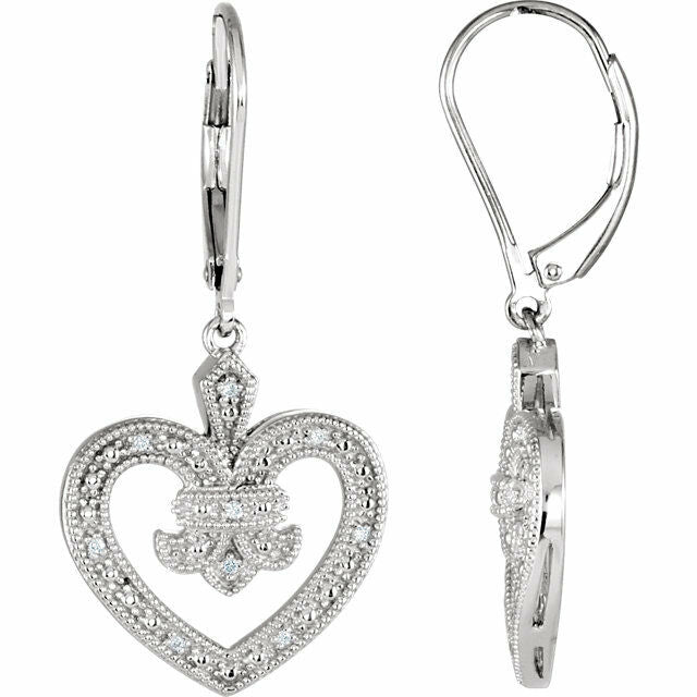 1ct Round Cut VVS1 Diamond Fleur-de-lis Drop Earring Women 14k White Gold Finish