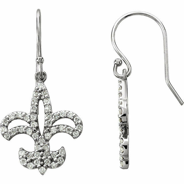 1ct Round Cut VVS1 Diamond Fleur-de-lis Stud Earring Women 14k White Gold Finish