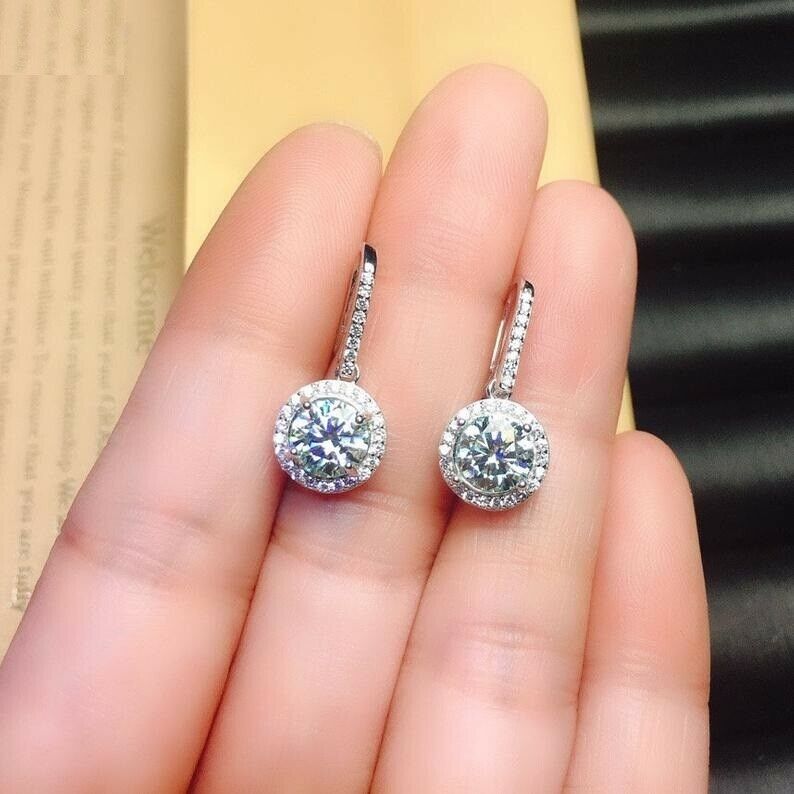 1ct Round Cut VVS1D Diamond Halo Drop Earrings Women 14k White Gold Finish