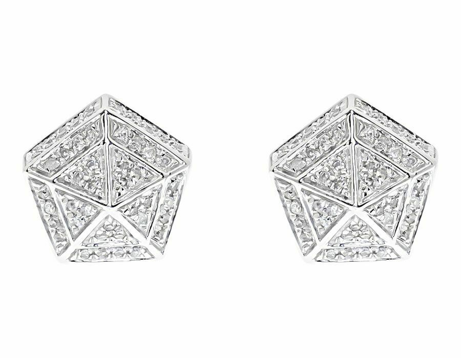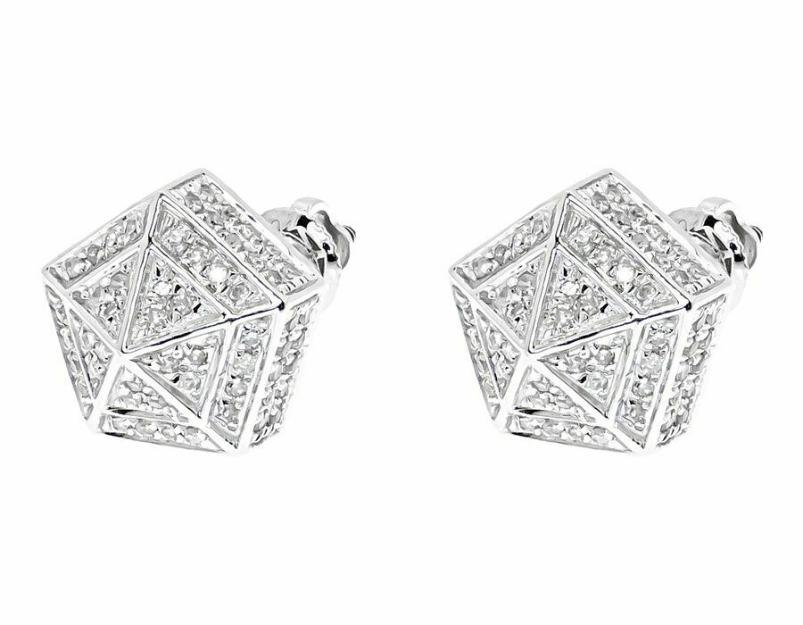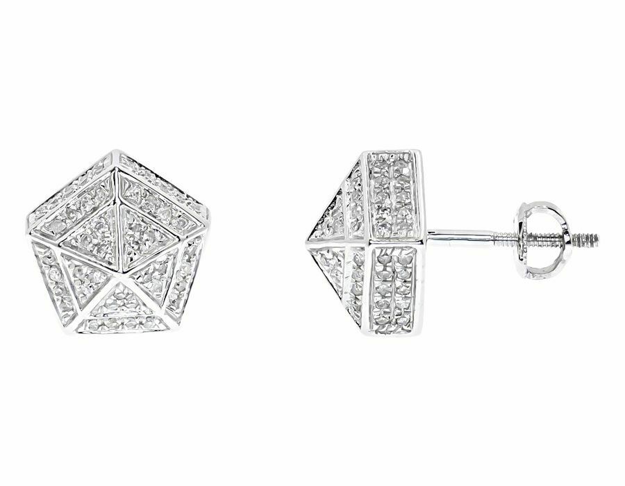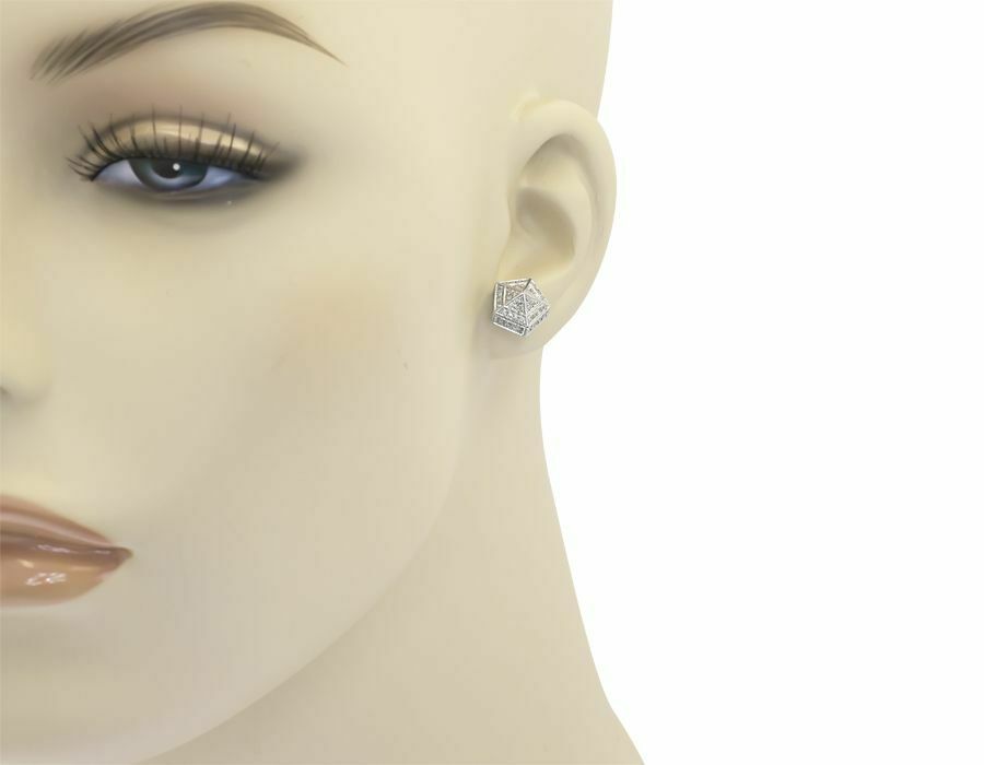 1ct Round Cut VVS1D Diamond Pentagon Stud Earrings Women 14k White Gold Finish