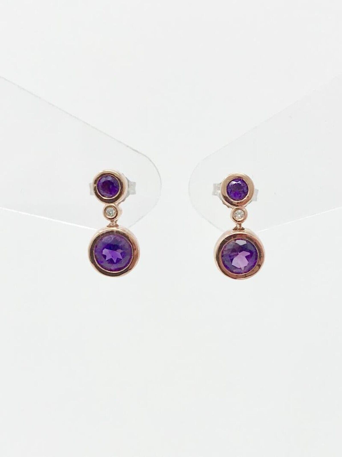 1ct Round Cut Simulated Purple Amethyst Bezel Set Drop Earrings 14k Rose Gold Plated