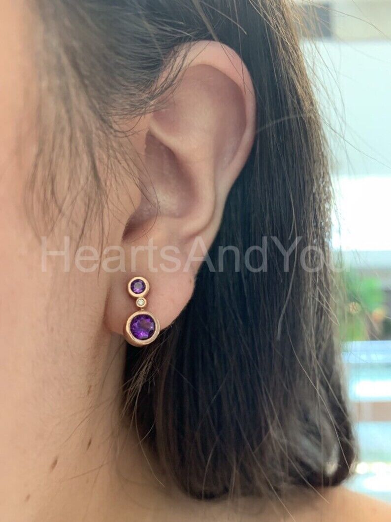 1ct Round Simulated Purple Amethyst Bezel Set Drop Earrings 14k Rose Gold Plated