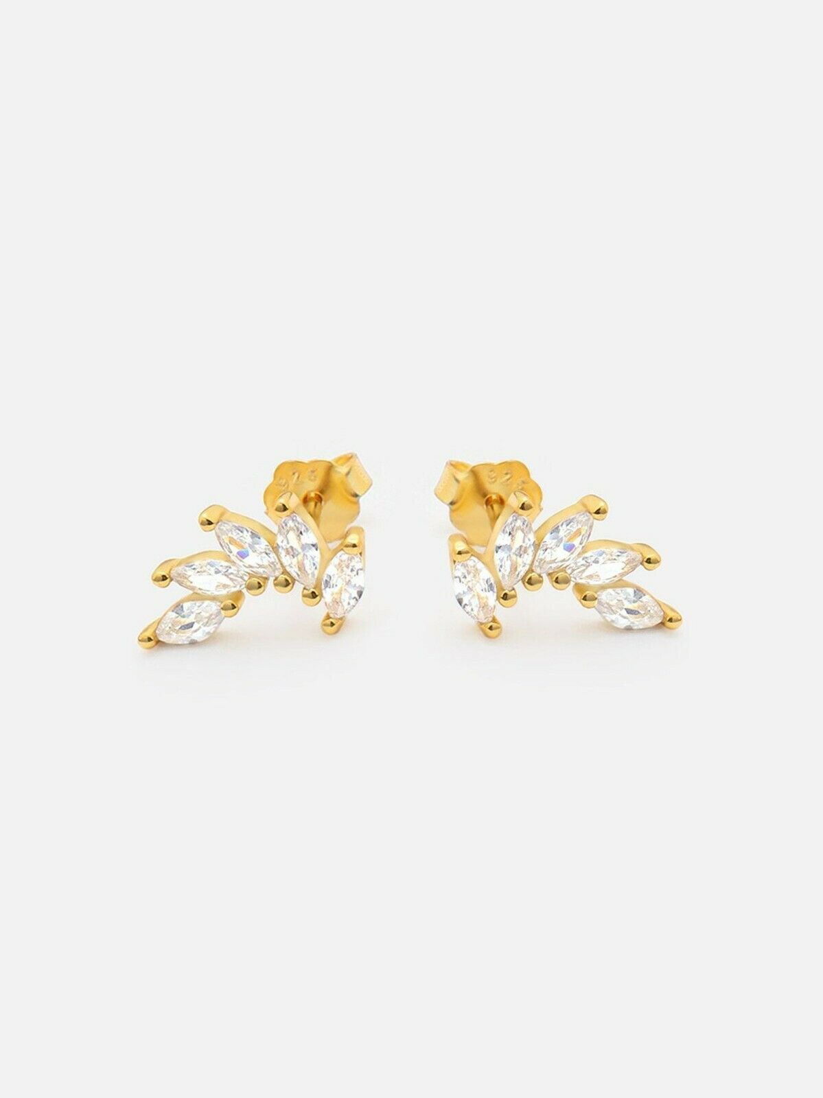 1ct Stud Earrings Marquise Cut Diamond Floral Design 14k Yellow Gold Finish