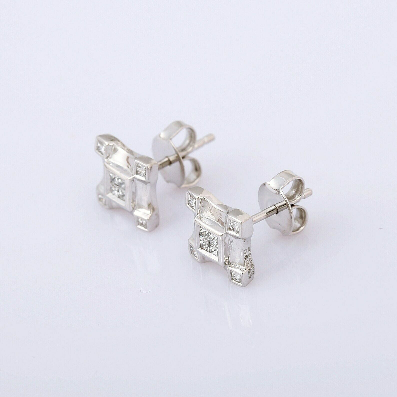 1ct Stud Earrings Princess Cut Diamond Tiled Design 14k White Gold Finish
