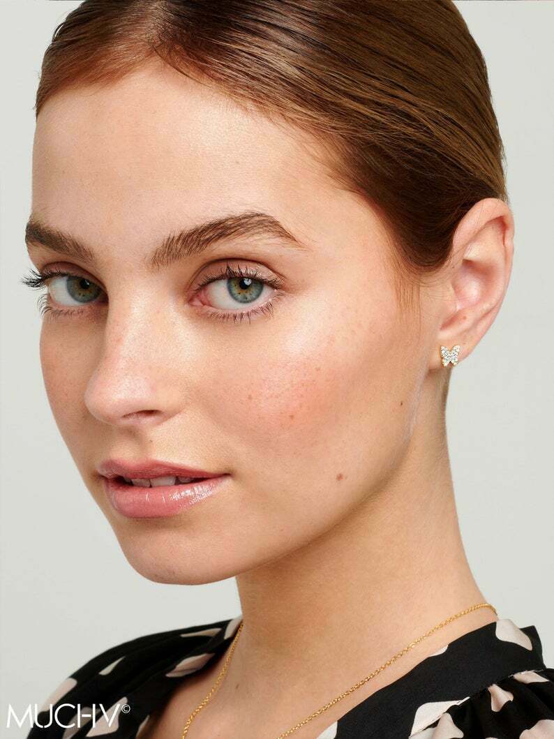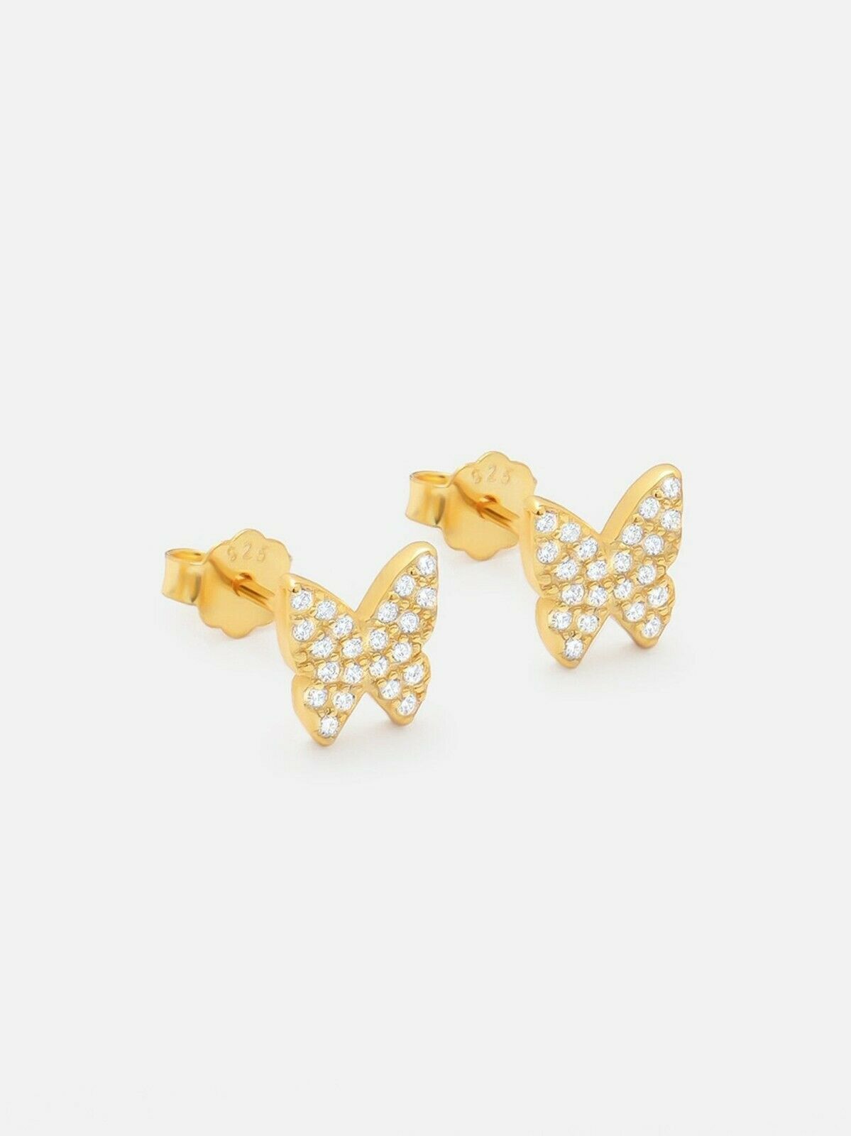 1ct Stud Earrings Round Cut Diamond Butterfly Design 14k Yellow Gold Finish