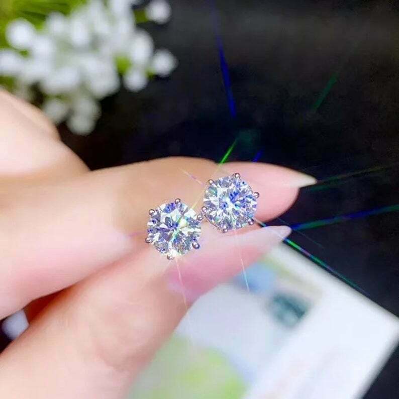 1ct Stud Earrings Round Cut Diamond Solitaire Women 14k White Gold Finish
