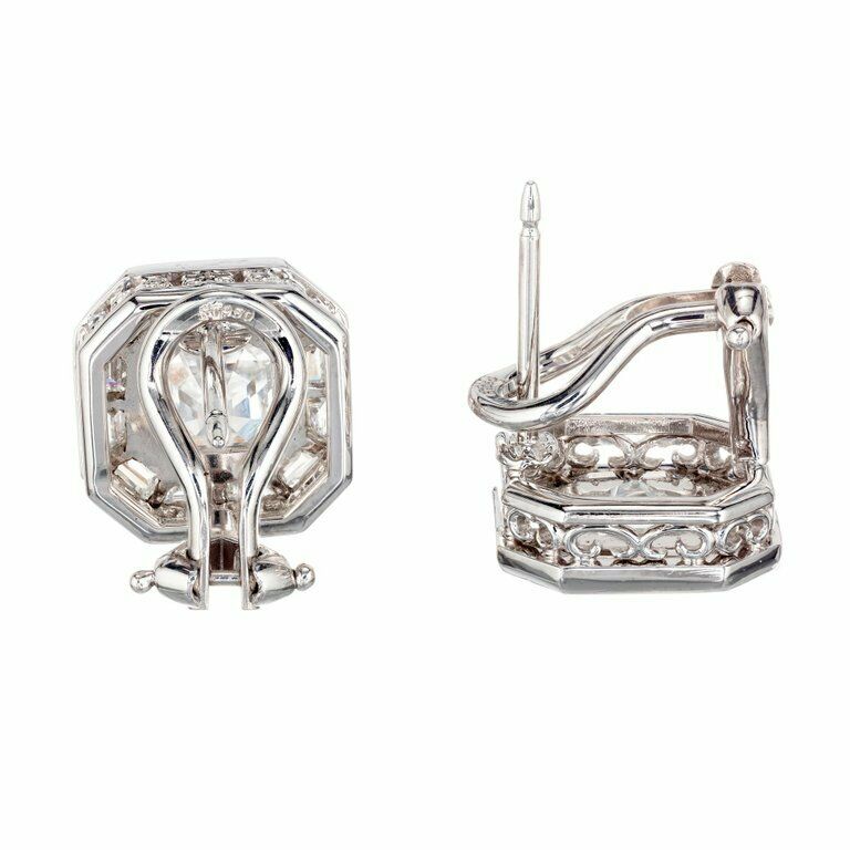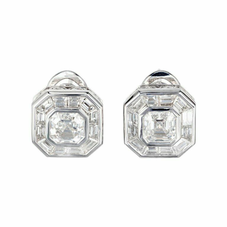 2.04ct Asscher Cut VVS1D Diamond Art Deco Halo Stud Earrings 14k White Gold Finish