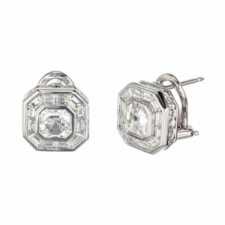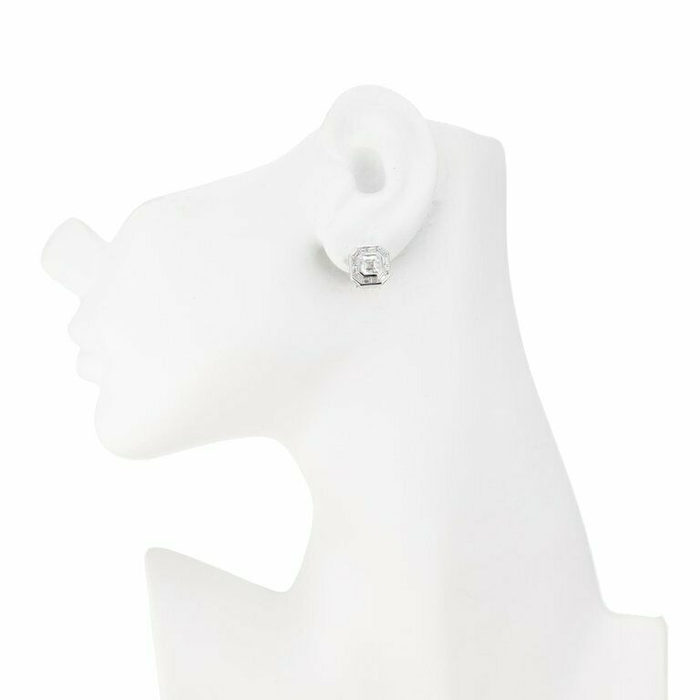 2.04ct Asscher Cut VVS1 Diamond Art Deco Halo Stud Earrings 14k WhiteGold Finish