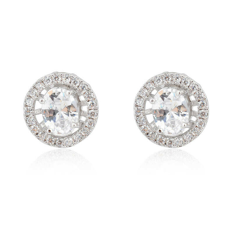 2.1ct Oval Cut VVS1D Diamond Halo Solitaire Stud Earrings 14k White Gold Finish