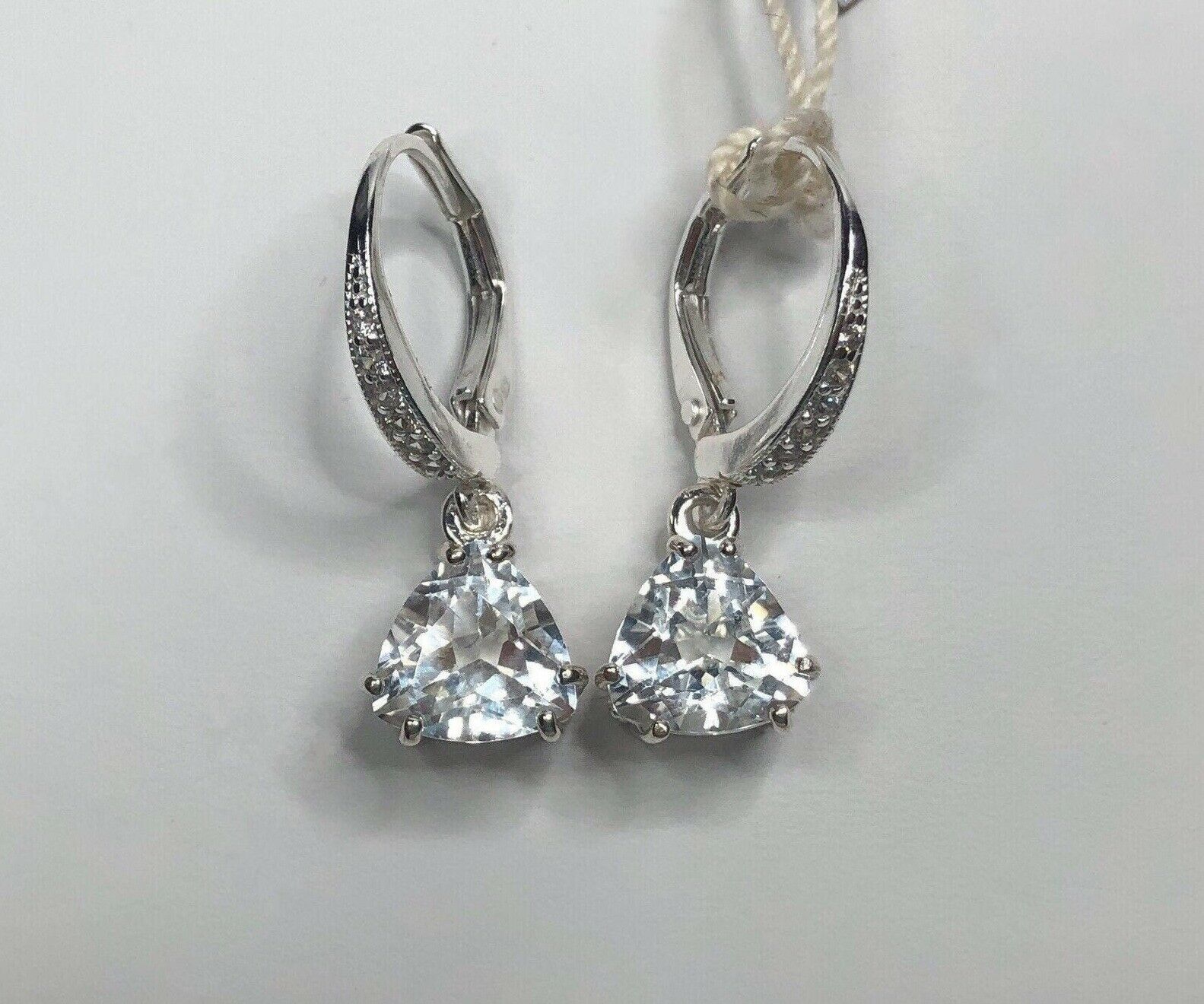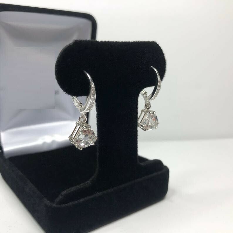 2.2Ct Trillion Cut VVS1 Diamond Leverback Dangle Earrings 14K White Gold Finish
