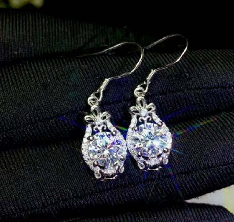 2.3ct Dangle Earrings Round Cut Diamond Stylish Halo 14k White Gold Finish
