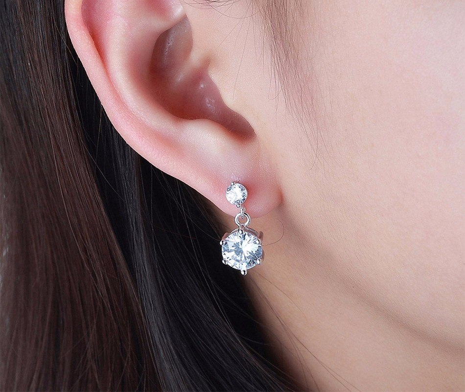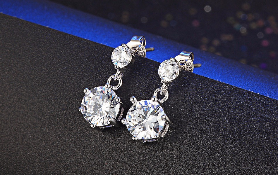 2.3ct Round Cut Diamond Crystal Party Wear Drop Earrings 14k White Gold Finish