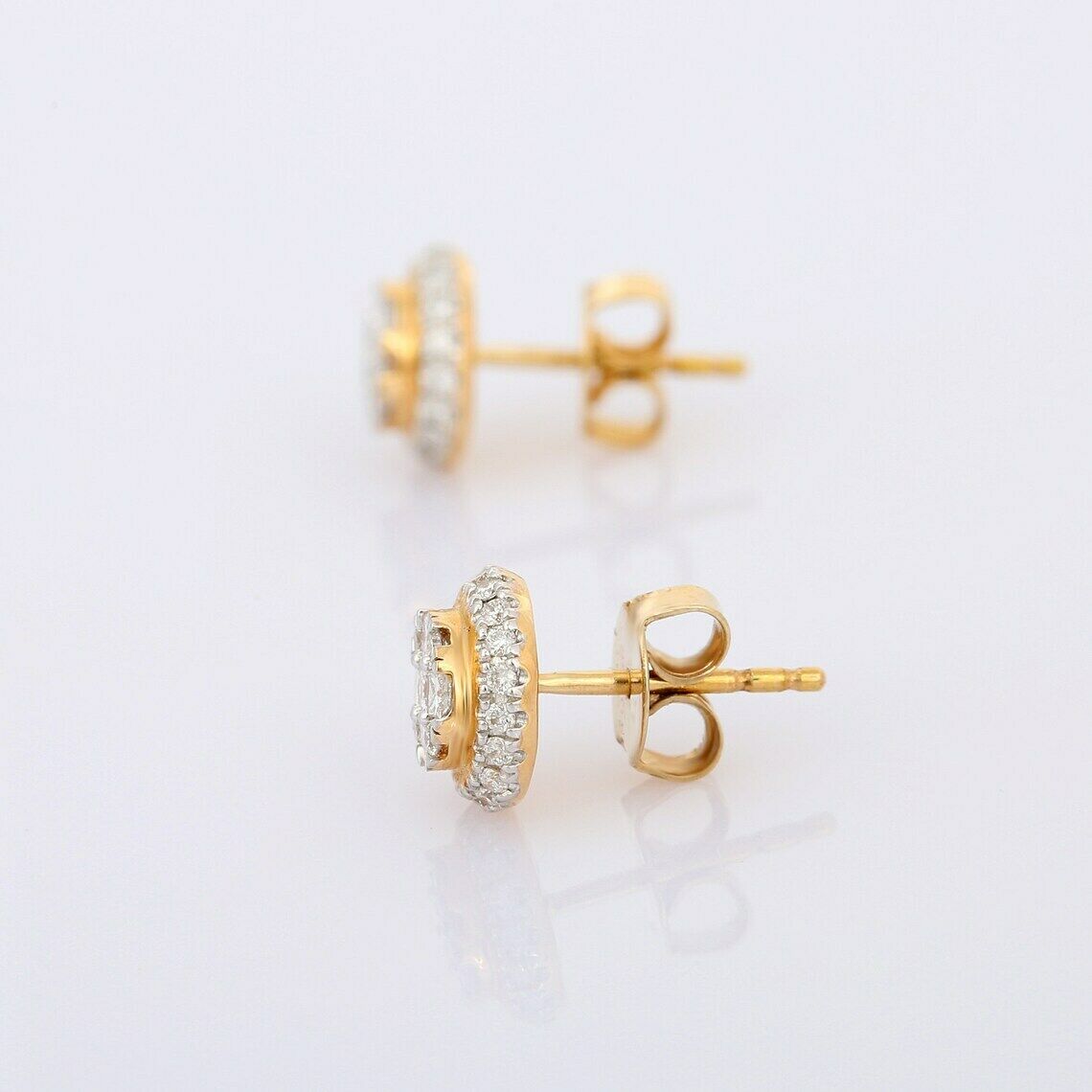 2.3ct Stud Earrings Princess Round Cut Diamond Halo 14k Yellow Gold Finish