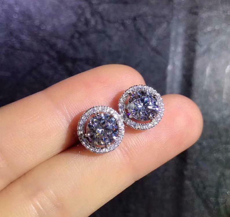 2.3ct Stud Earrings Round Cut Diamond Halo Design 14k White Gold Finish