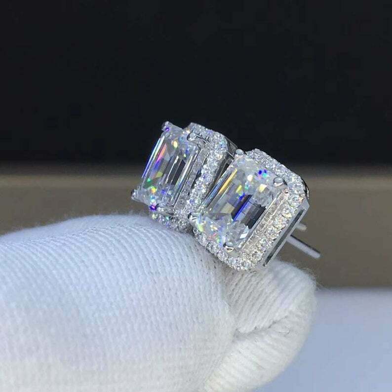 2.5ct Emerald Cut VVS1D Diamond Halo Solitaire Stud Earrings 14k White Gold Over