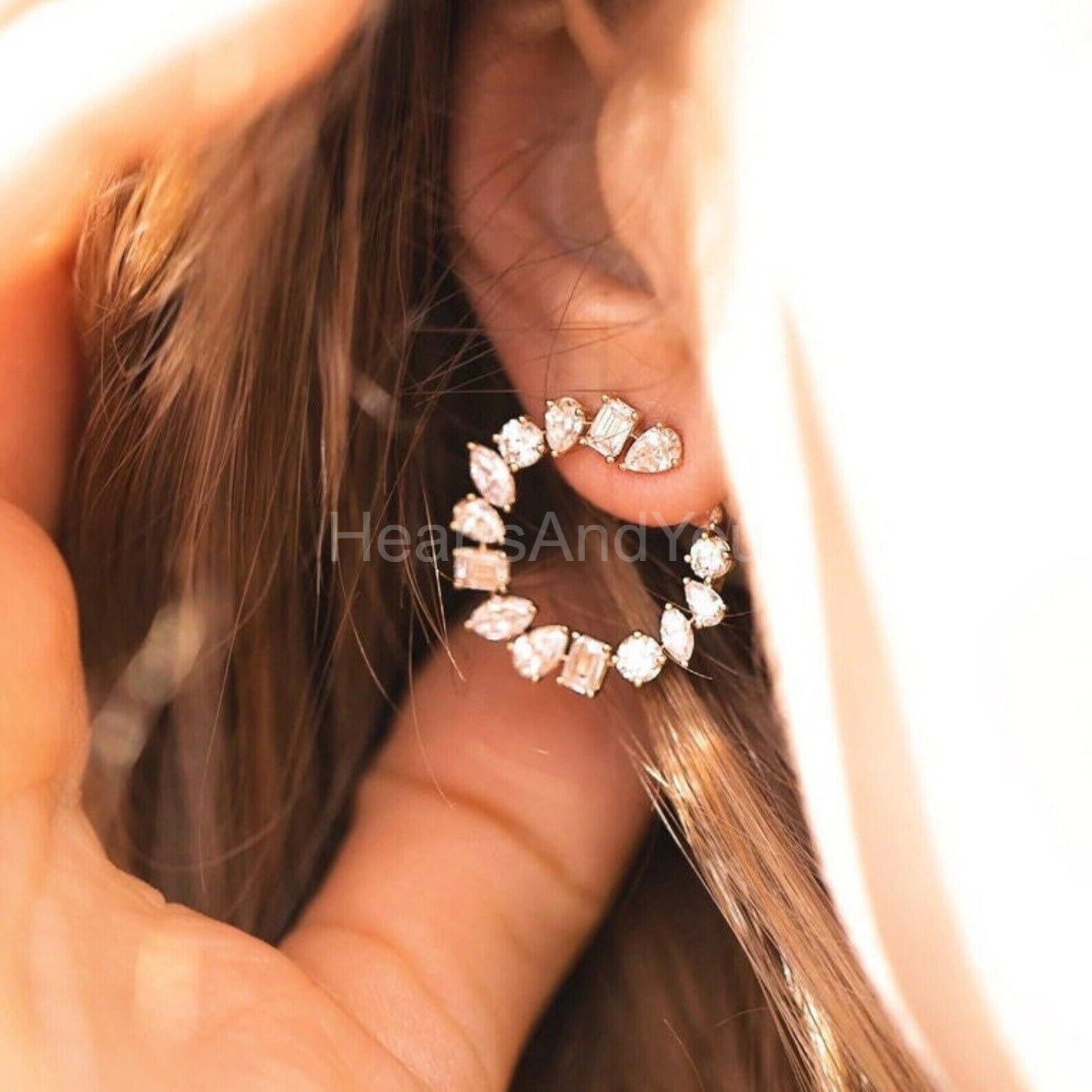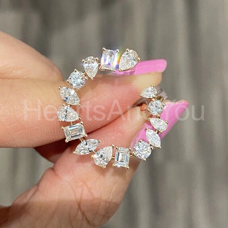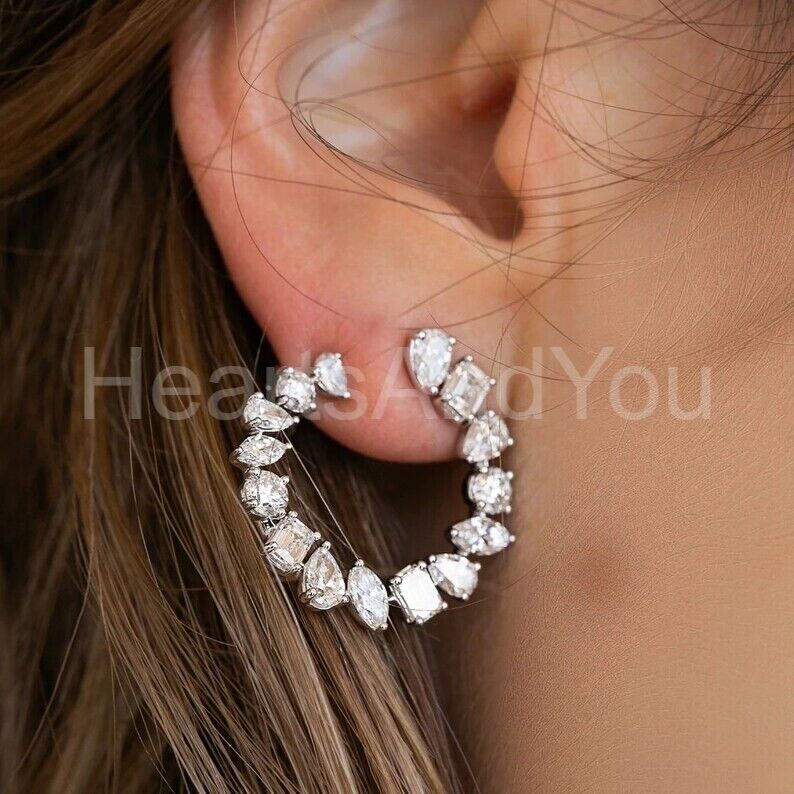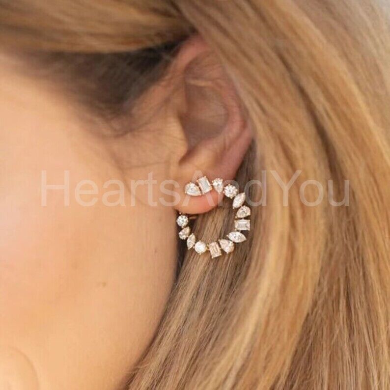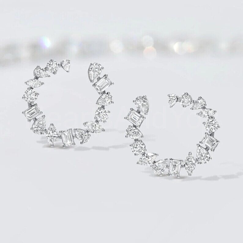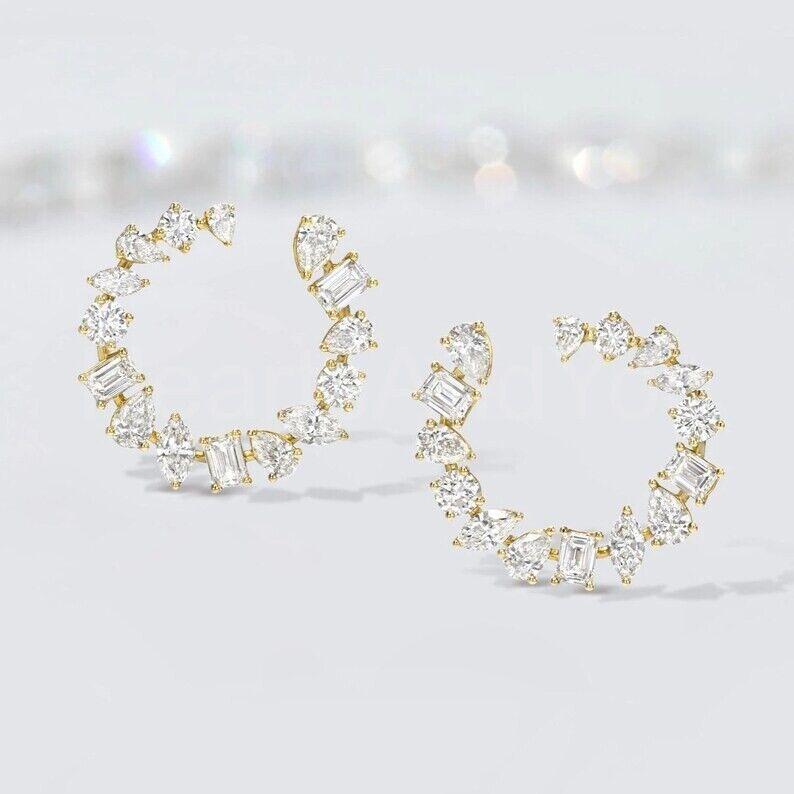 2.5ct Multi Shape Simulated Diamond Open Hoop Earrings 14k Yellow Gold Plated