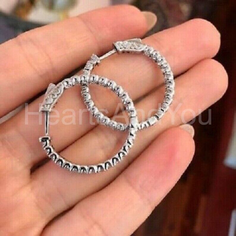 2.5ct Round Cut Moissanite Inside Out Party Hoop Earrings 14k White Gold Plated