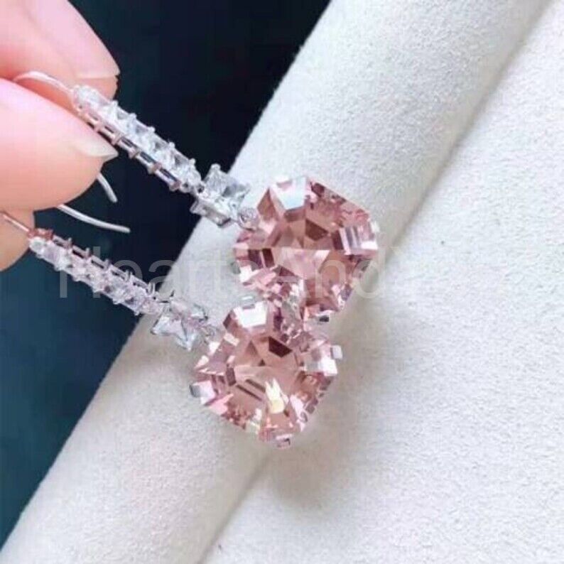 2ct Asscher Cut Simulated Sapphire Art Deco Drop Earrings 14k White Gold Plated