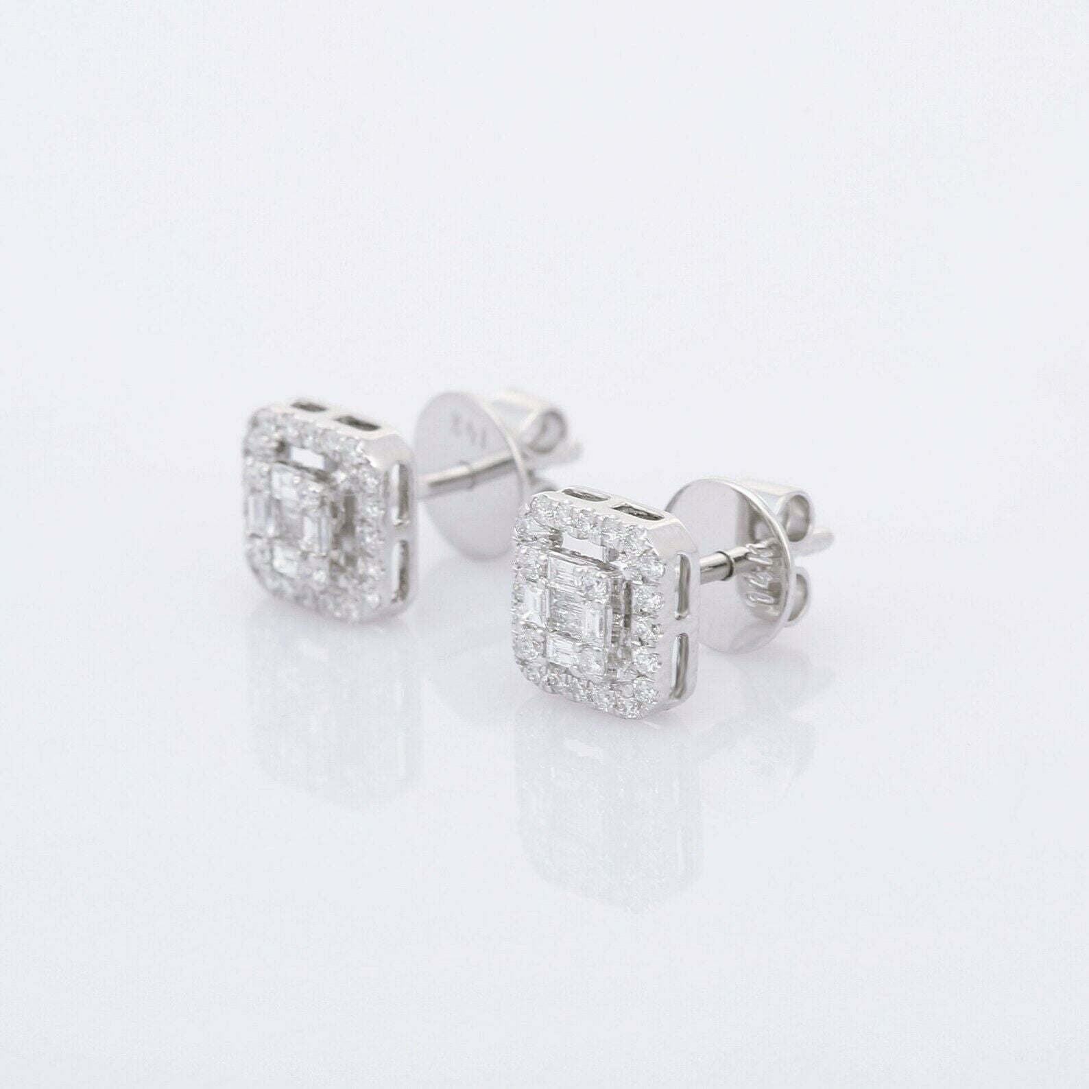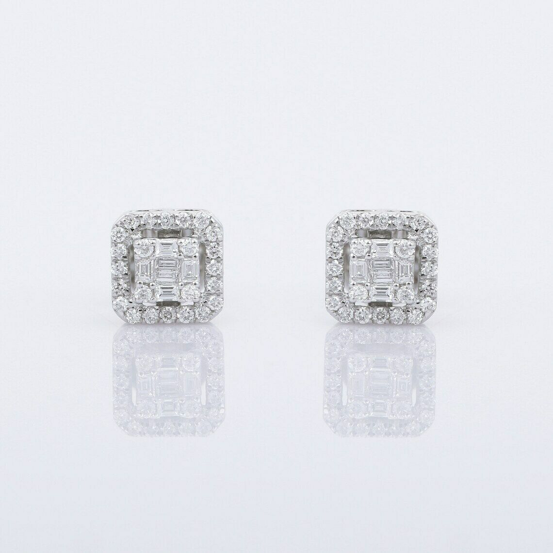 2Ct Baguette Cut Diamond Halo Trendy Solitaire Stud Earring 14K WhiteGold Finish