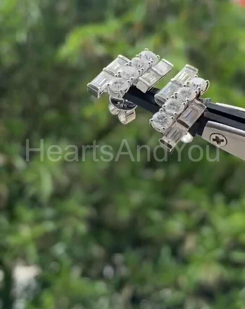 2ct Baguette Cut Simulated Diamond Lightning Stud Earrings 14k White Gold Plated
