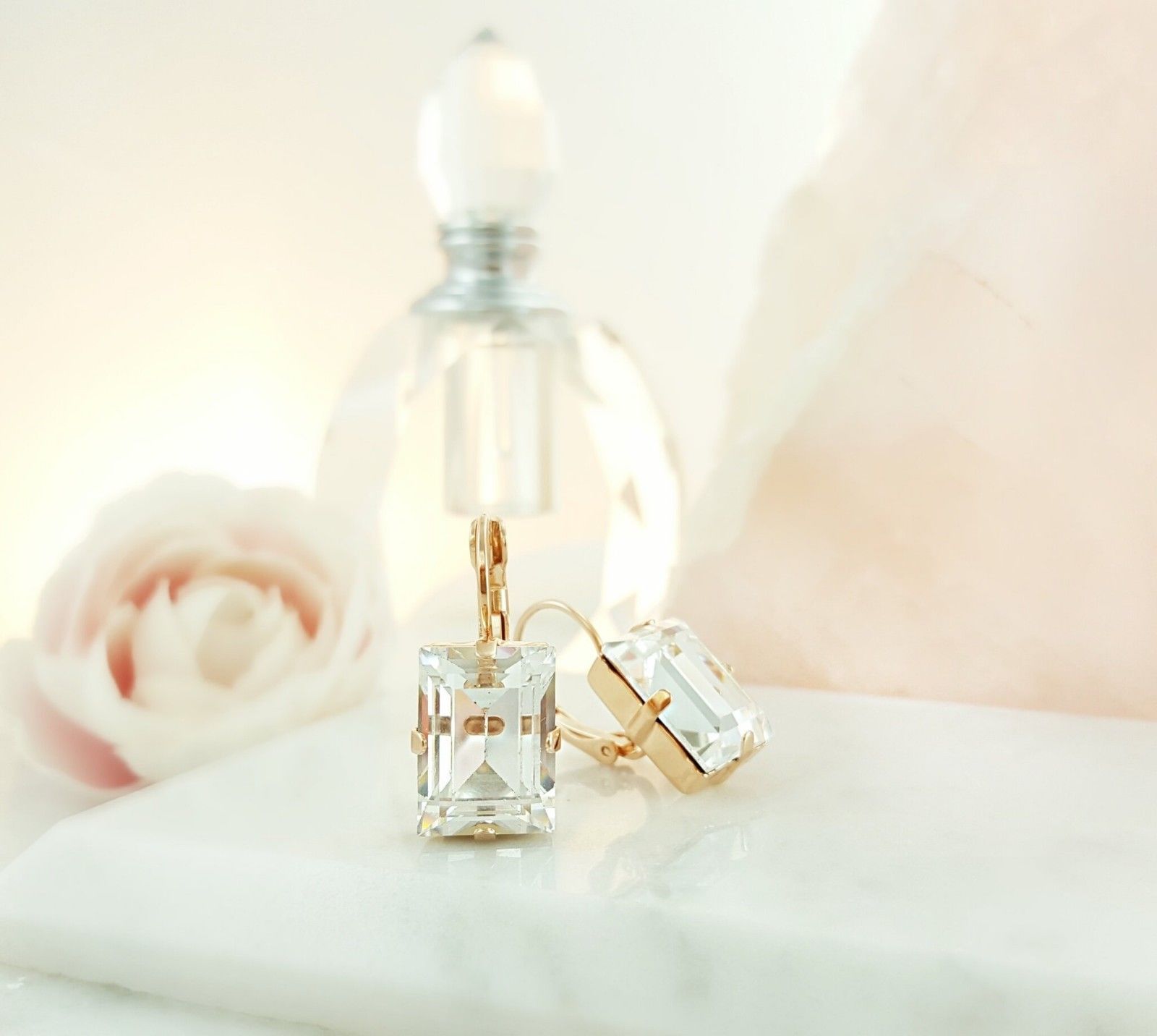 2ct Emerald Cut Diamond Classy Solitaire Drop Earrings 14k Yellow Gold Finish