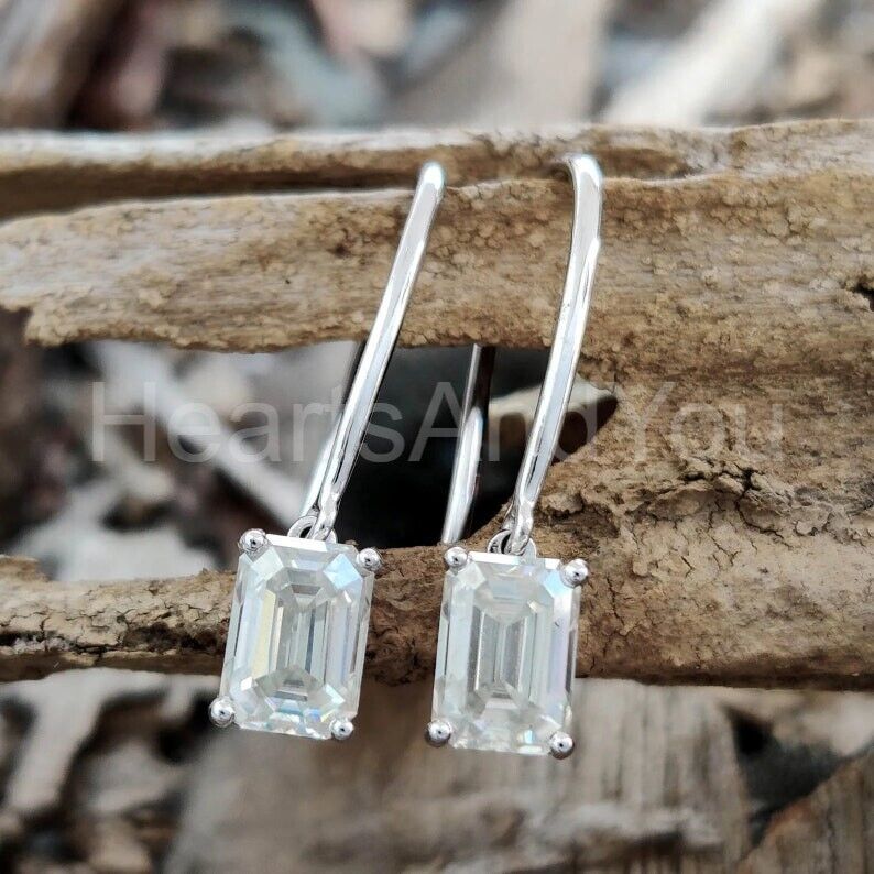 2ct Emerald Cut Simulated Diamond Solitaire Drop Earrings 14k White Gold Plated