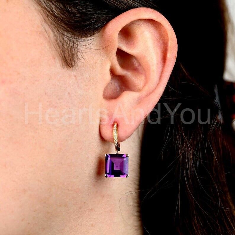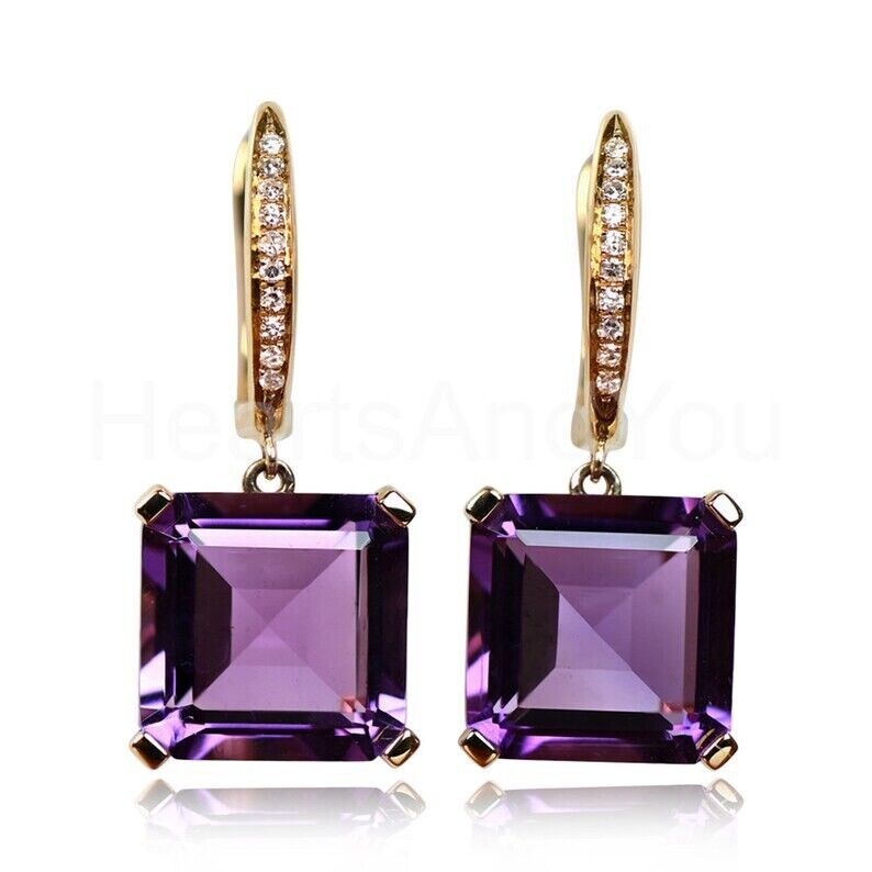 2ct Emerald Simulated Amethyst Latch Back Drop Earrings 14k Yellow Gold Plated