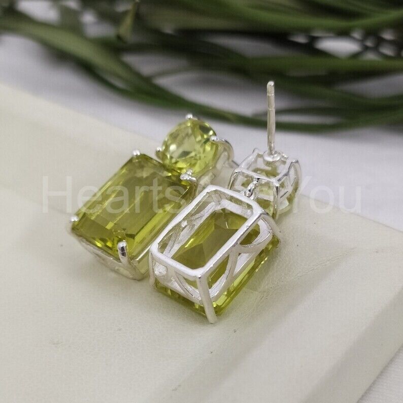 2ct Emerald Cut Simulated Peridot Party Wear Dangle Earrings 14k White Gold Plated