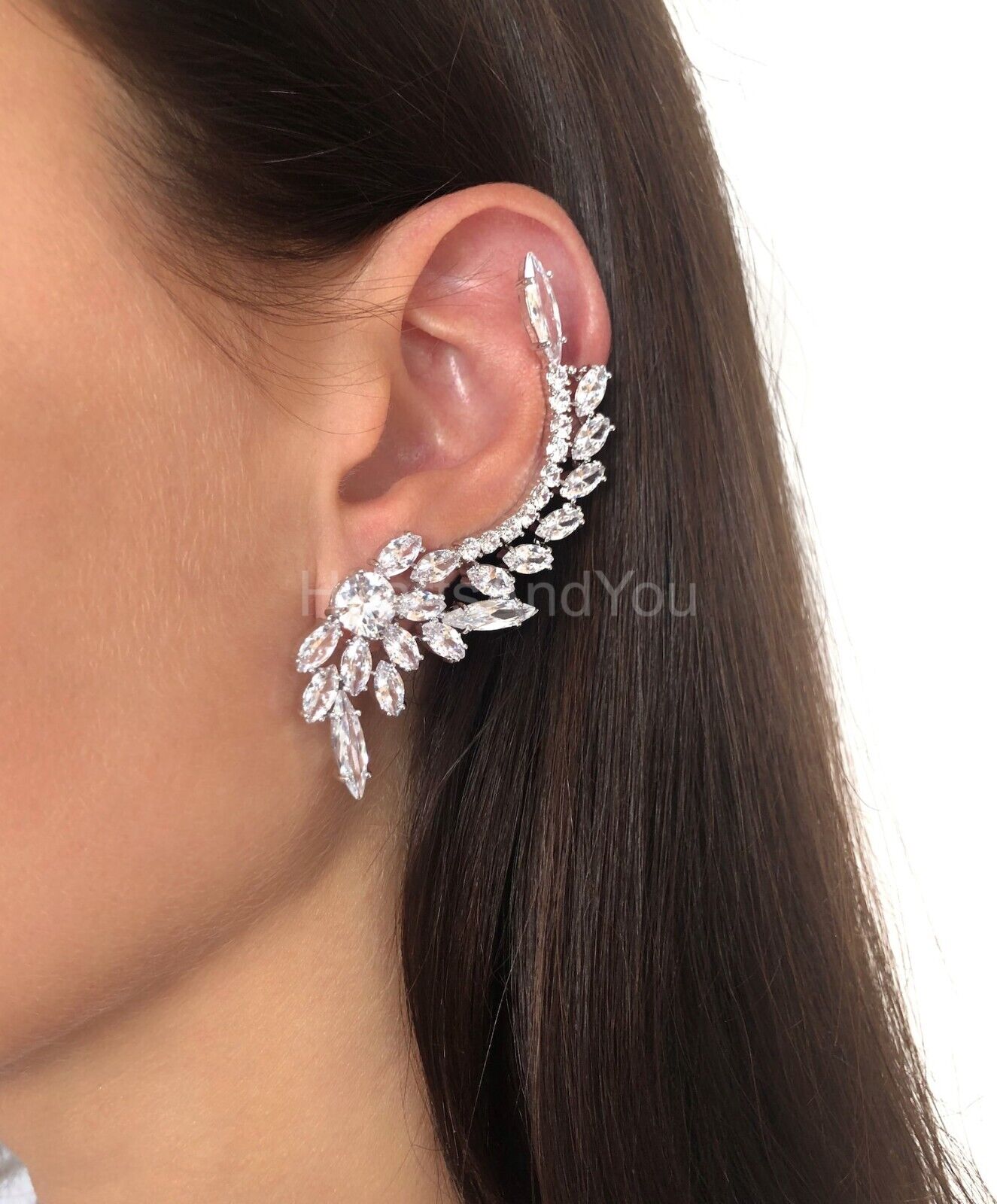 2ct Marquise Simulated Diamond Ear Climber Stud Earrings 14k White Gold Plated