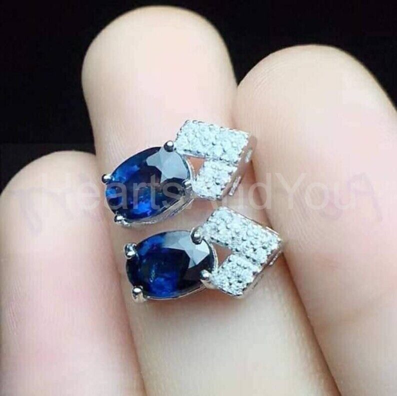 2ct Oval Cut Simulated Blue Sapphire Geometric Stud Earring 14k WhiteGold Plated