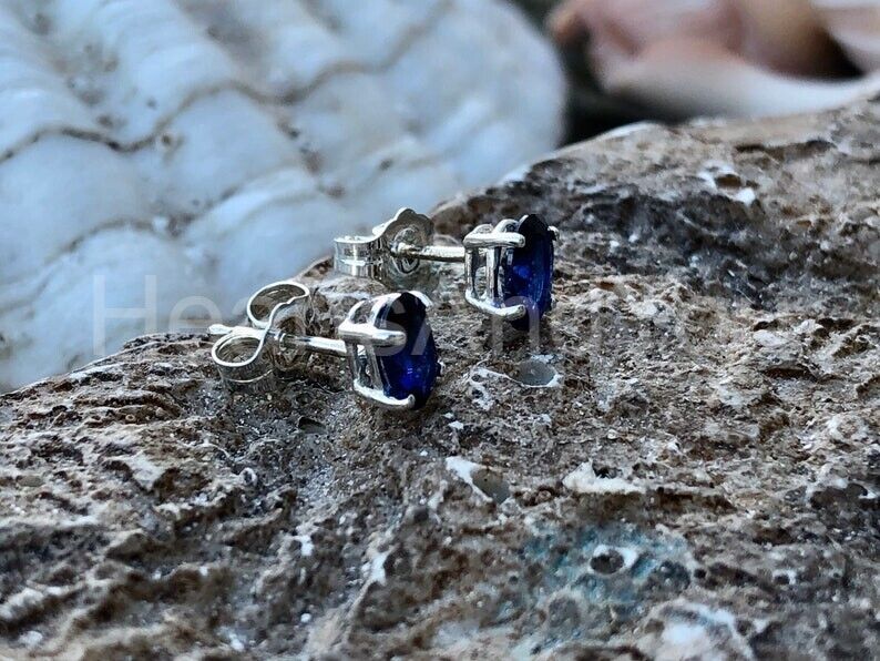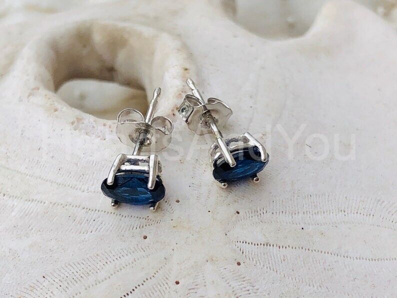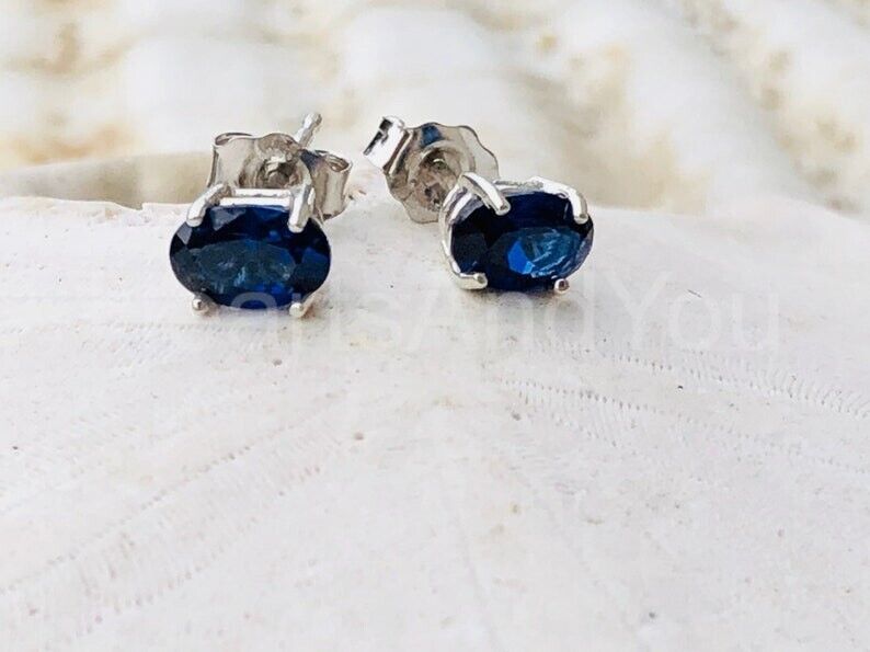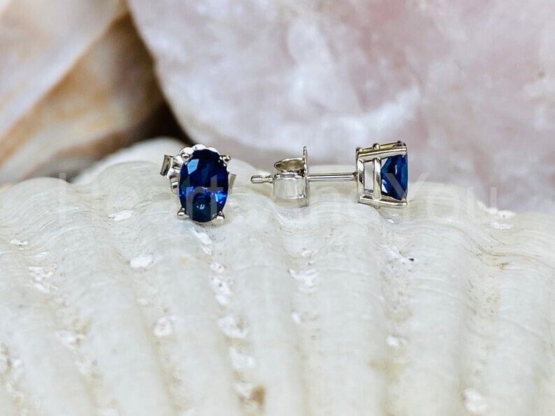2ct Oval Cut Simulated Blue Sapphire Solitaire Stud Earring 14k WhiteGold Plated