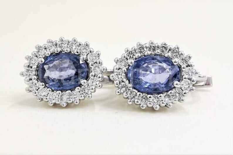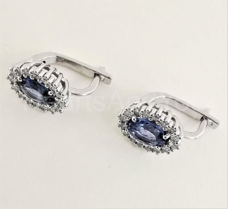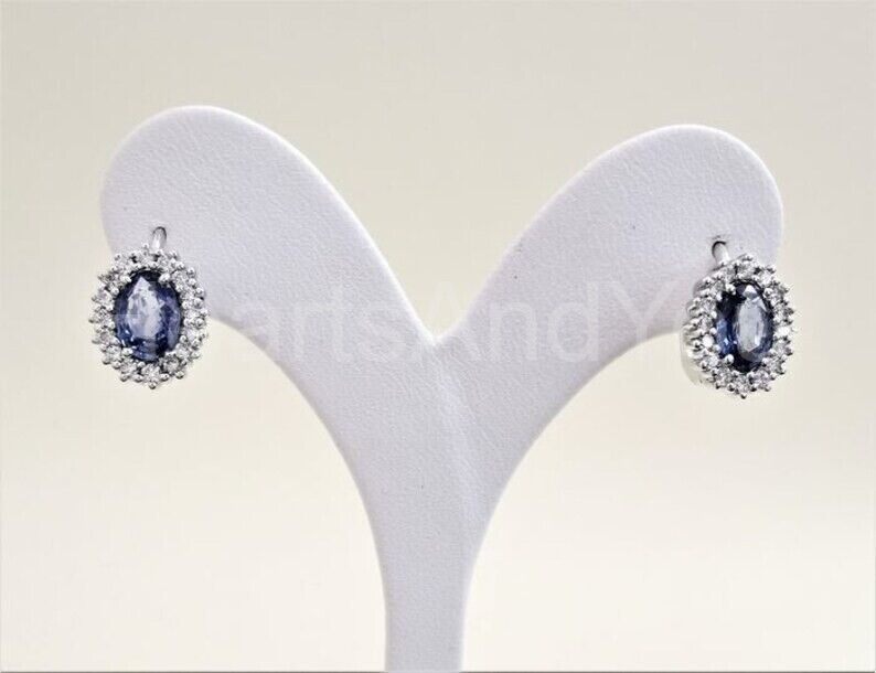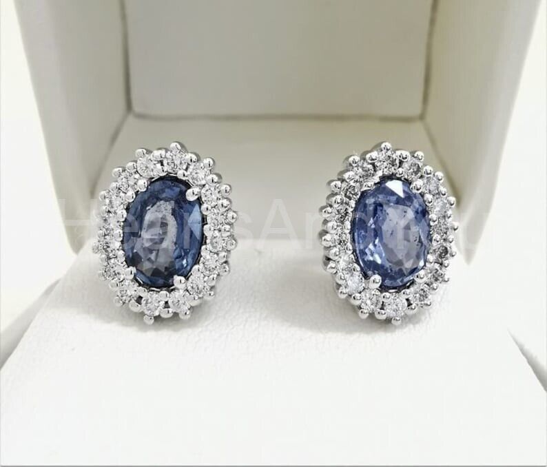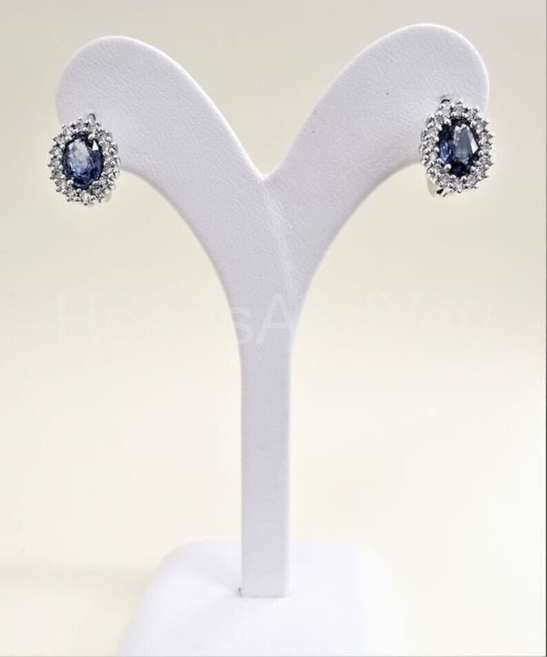 2ct Oval Cut Simulated Blue Tanzanite Halo Stud Earrings 14k White Gold Plated