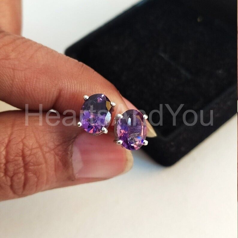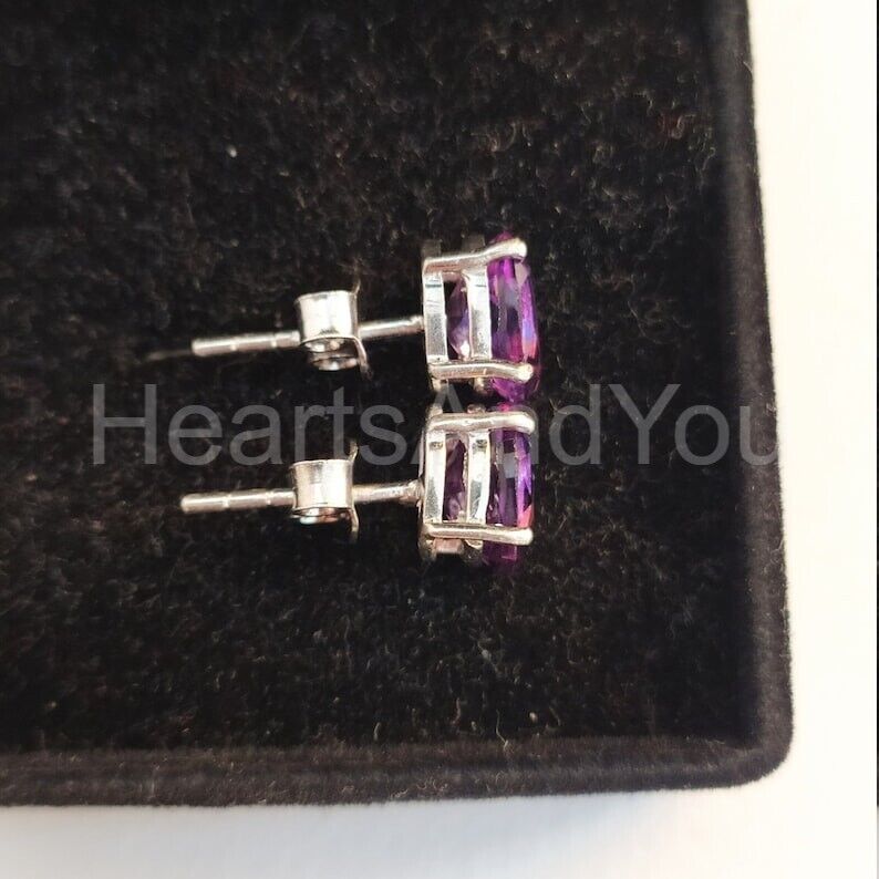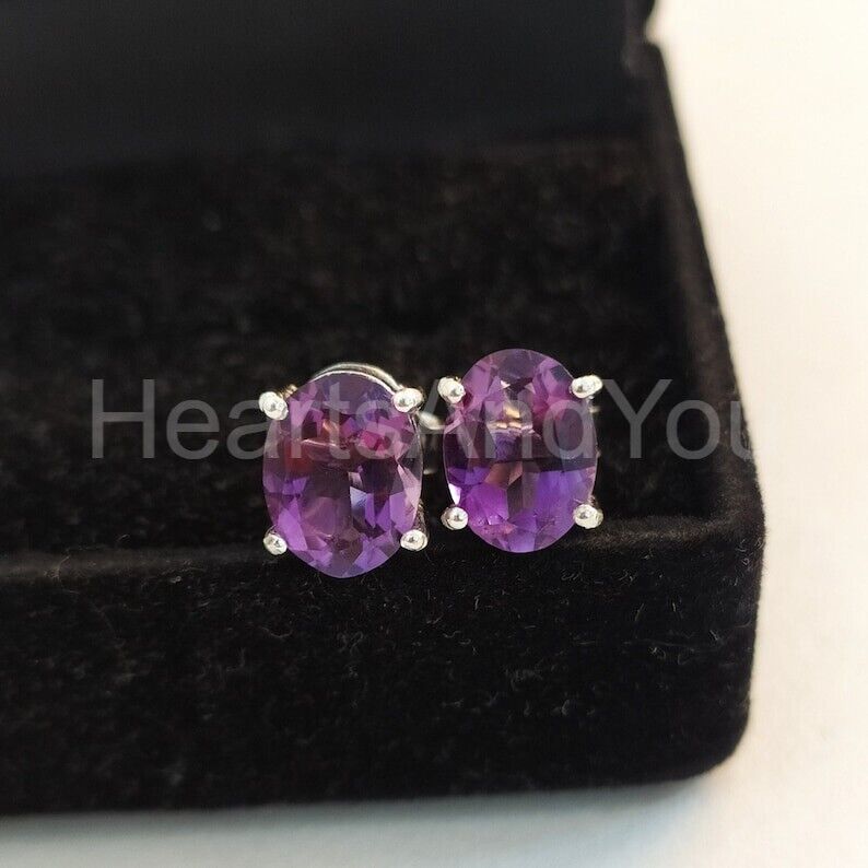 2ct Oval Cut Simulated Purple Amethyst Solitaire Stud Earrings 14k White Gold Plated