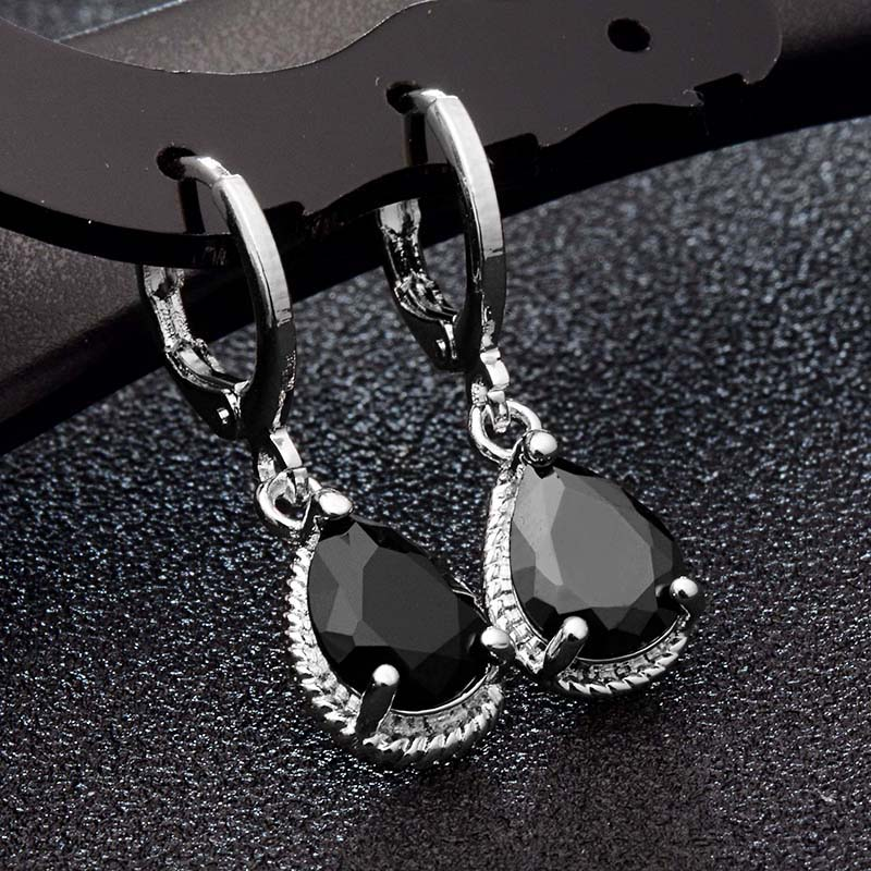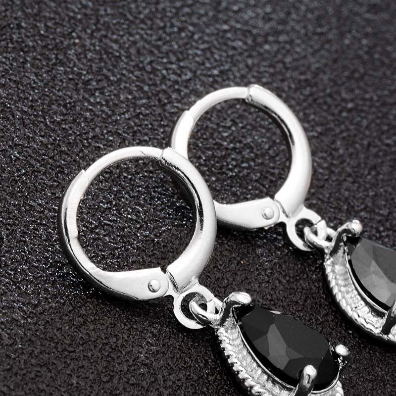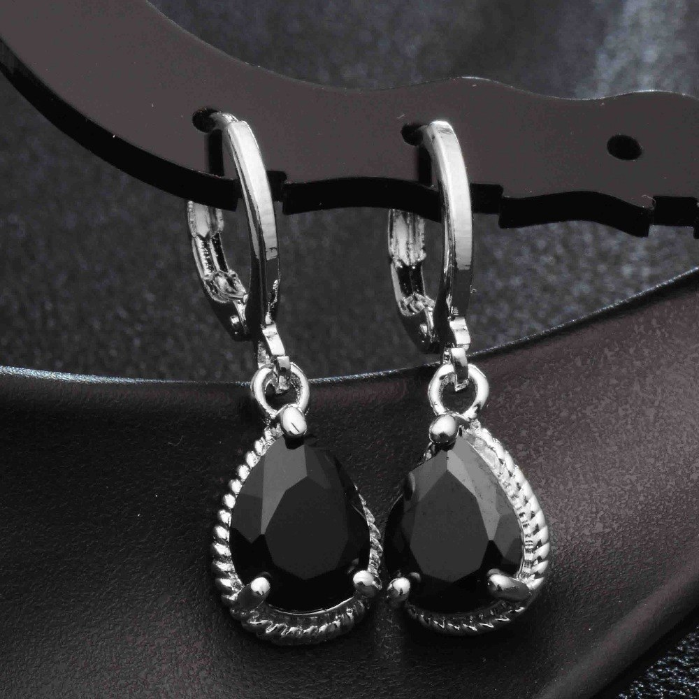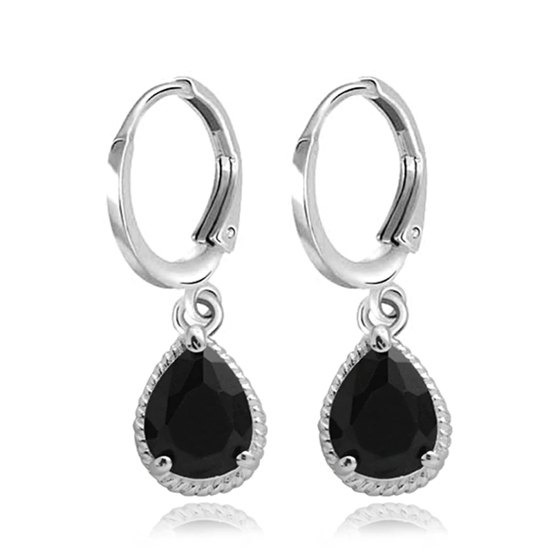 2Ct Pear Cut Black Diamond Solitaire Water Tear Drop Earring 14K White Gold Over