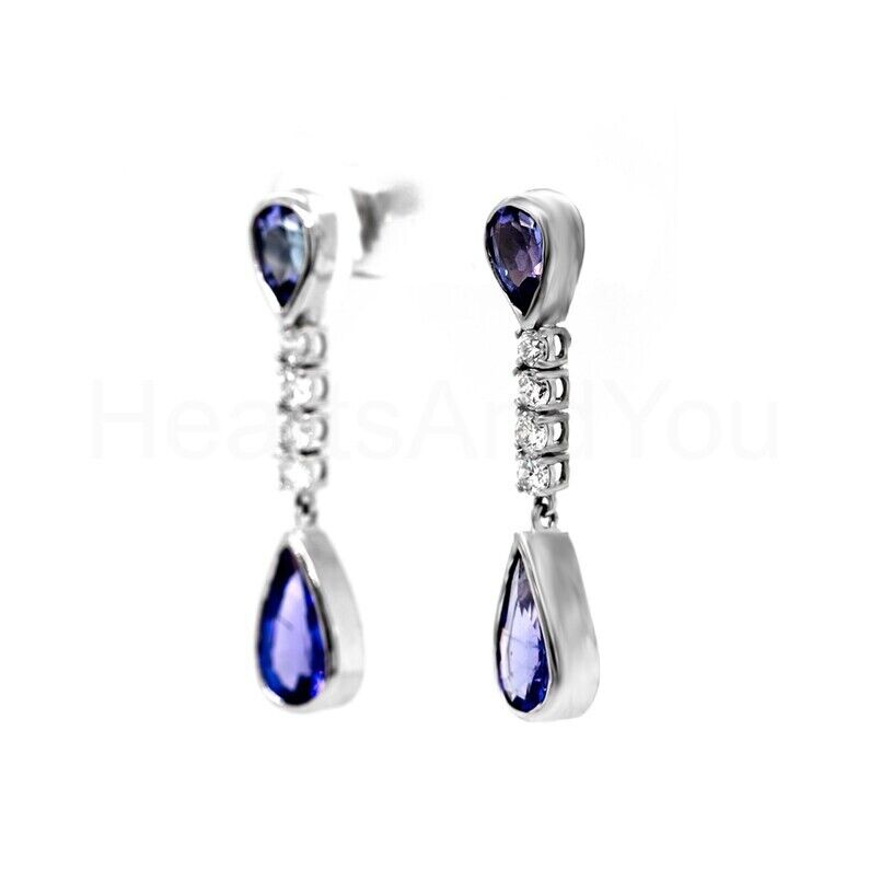 2ct Pear Simulated Tanzanite Party Wear Dangle Earrings 14k White Gold Plated