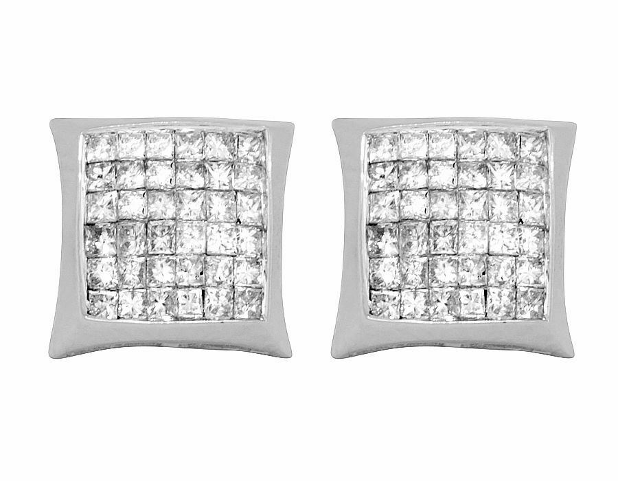 2ct Princess Cut Diamond Cluster Tile Square Stud Earrings 14k White Gold Finish