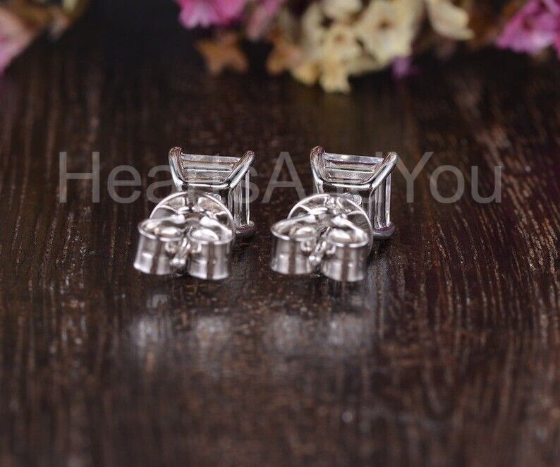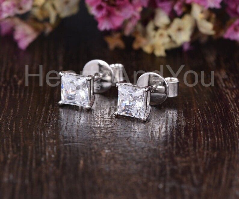 2ct Princess Simulated Diamond Solitaire Stud Earrings 14k White Gold Plated