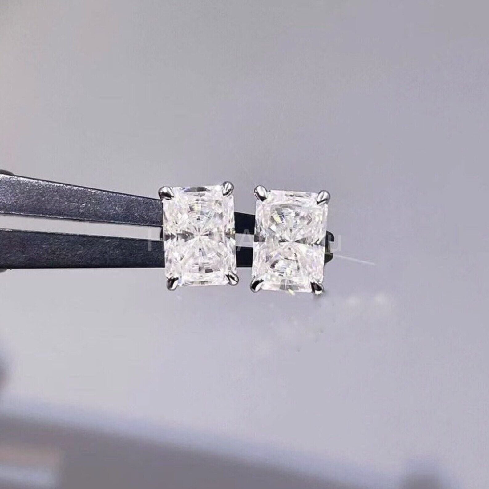 2ct Radiant Cut Simulated Diamond Solitaire Stud Earrings 14k White Gold Plated