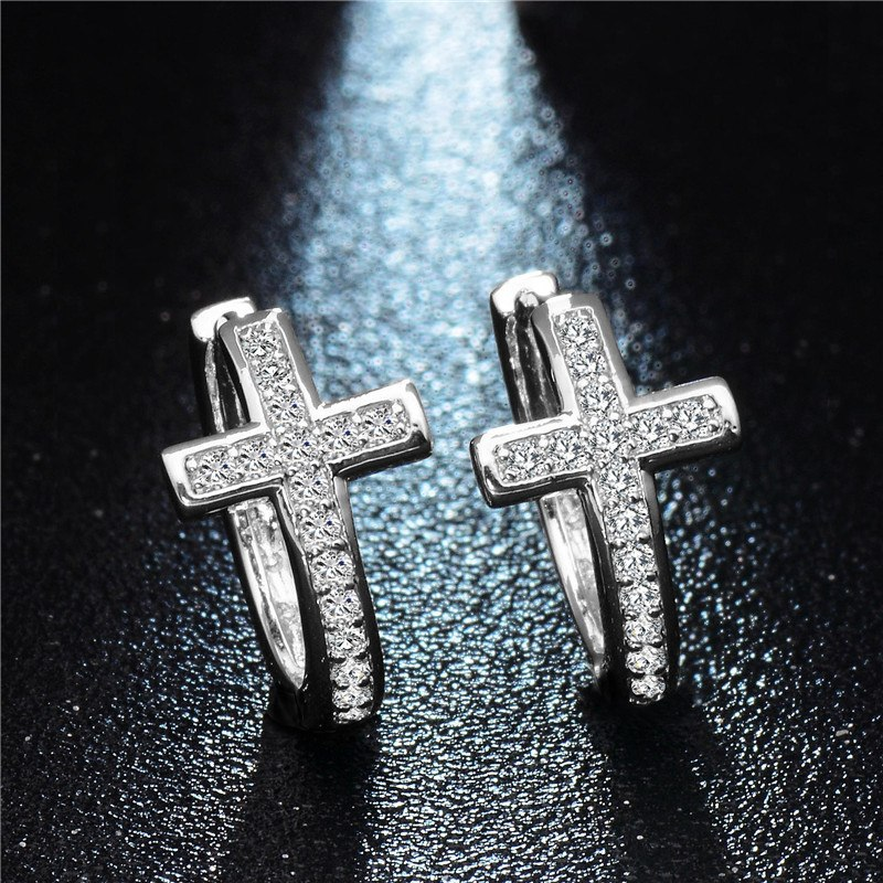 2Ct Round Brilliant Cut Diamond Cross Design Hoop Earrings 14K White Gold Finish
