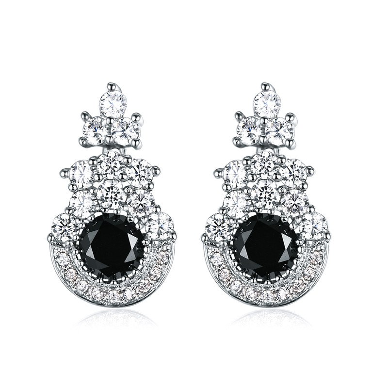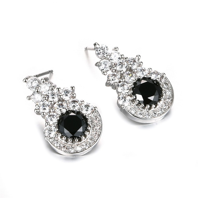 2ct Round Cut Black Diamond Halo Cluster Stud Earrings 14k White Gold Finish