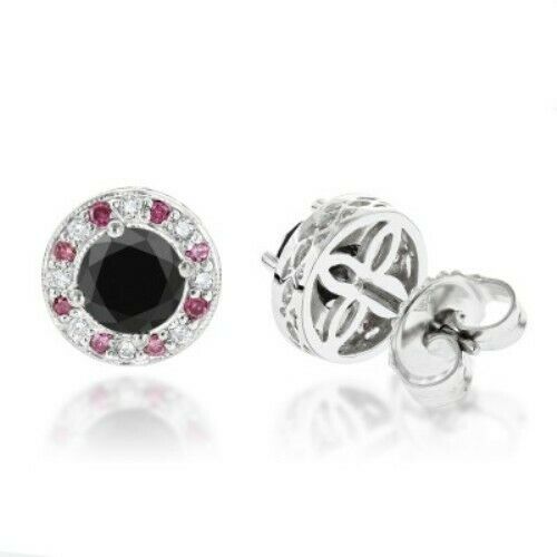 2Ct Round Cut Black Diamond Ruby Halo Vintage Stud Earring 14K White Gold Finish